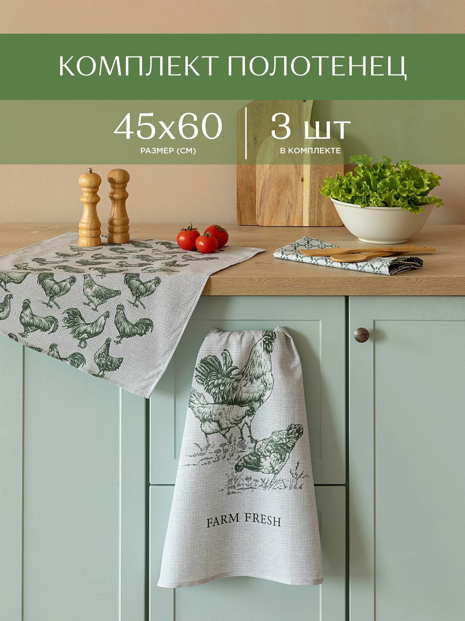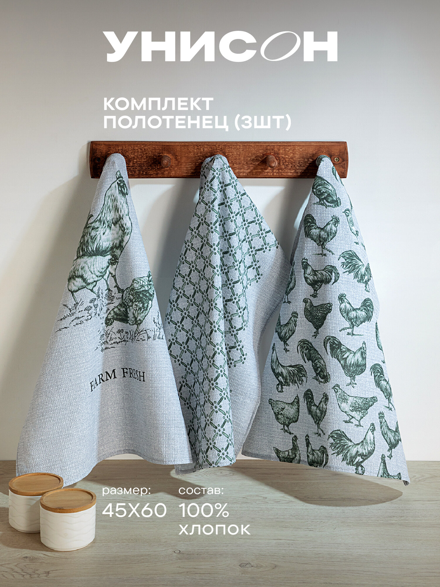 Купить Набор вафельных полотенец 45х60 (3 шт.) "Унисон" рис 33183-3 Farm fresh