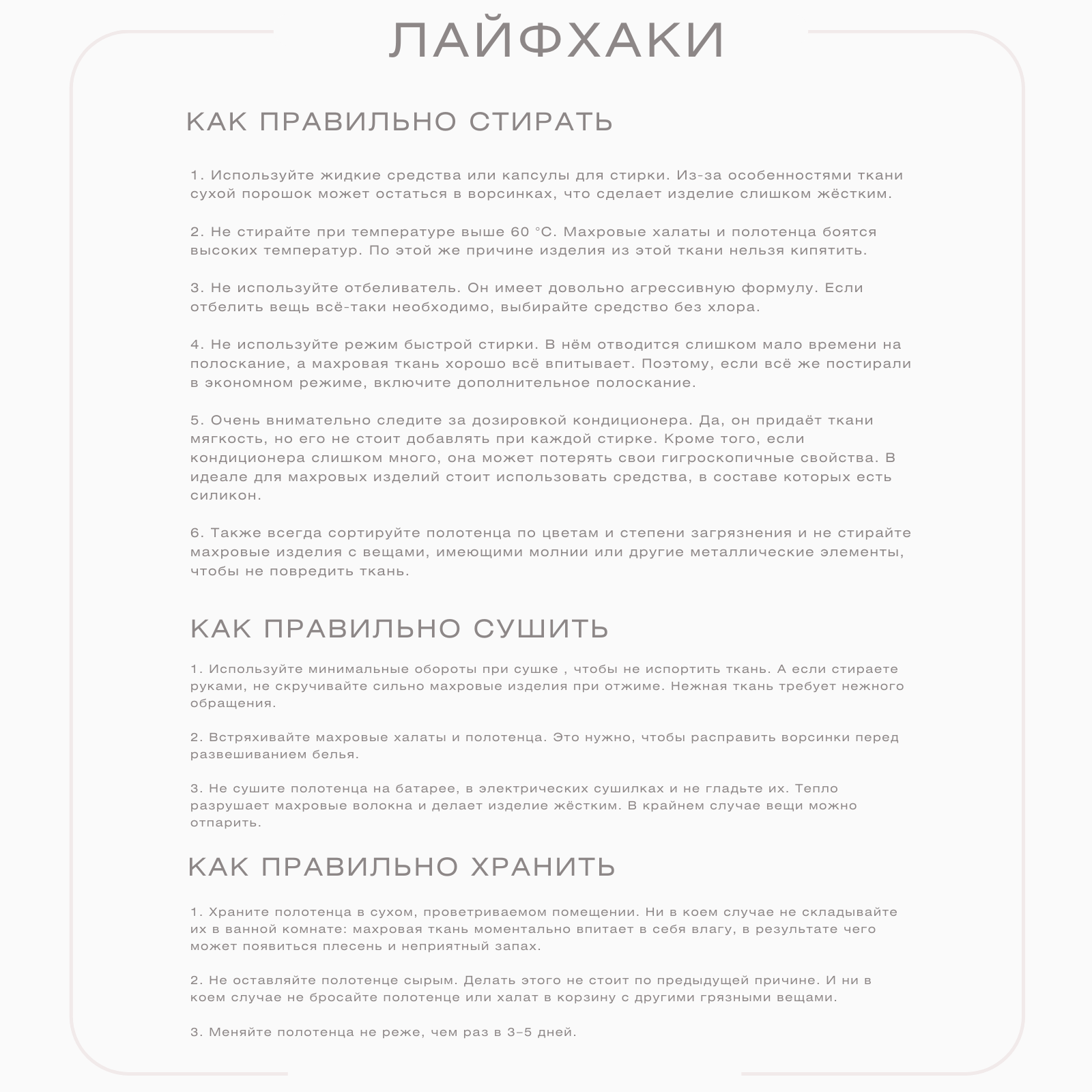 | Дополнительная информация | Высокая плотность. Высокая впитываемость |