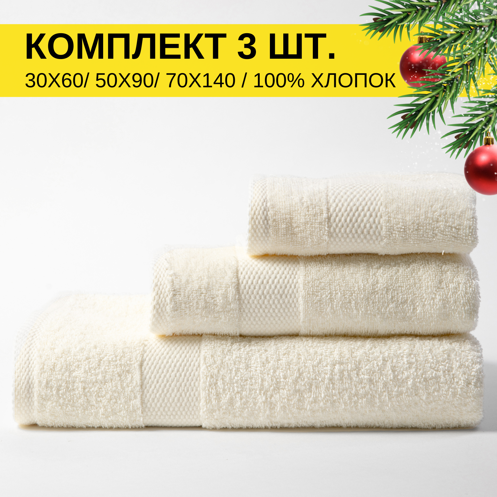 Купить Комплект махровых полотенец "Sevil" 3 штуки, Молочный; Набор из 3 штук