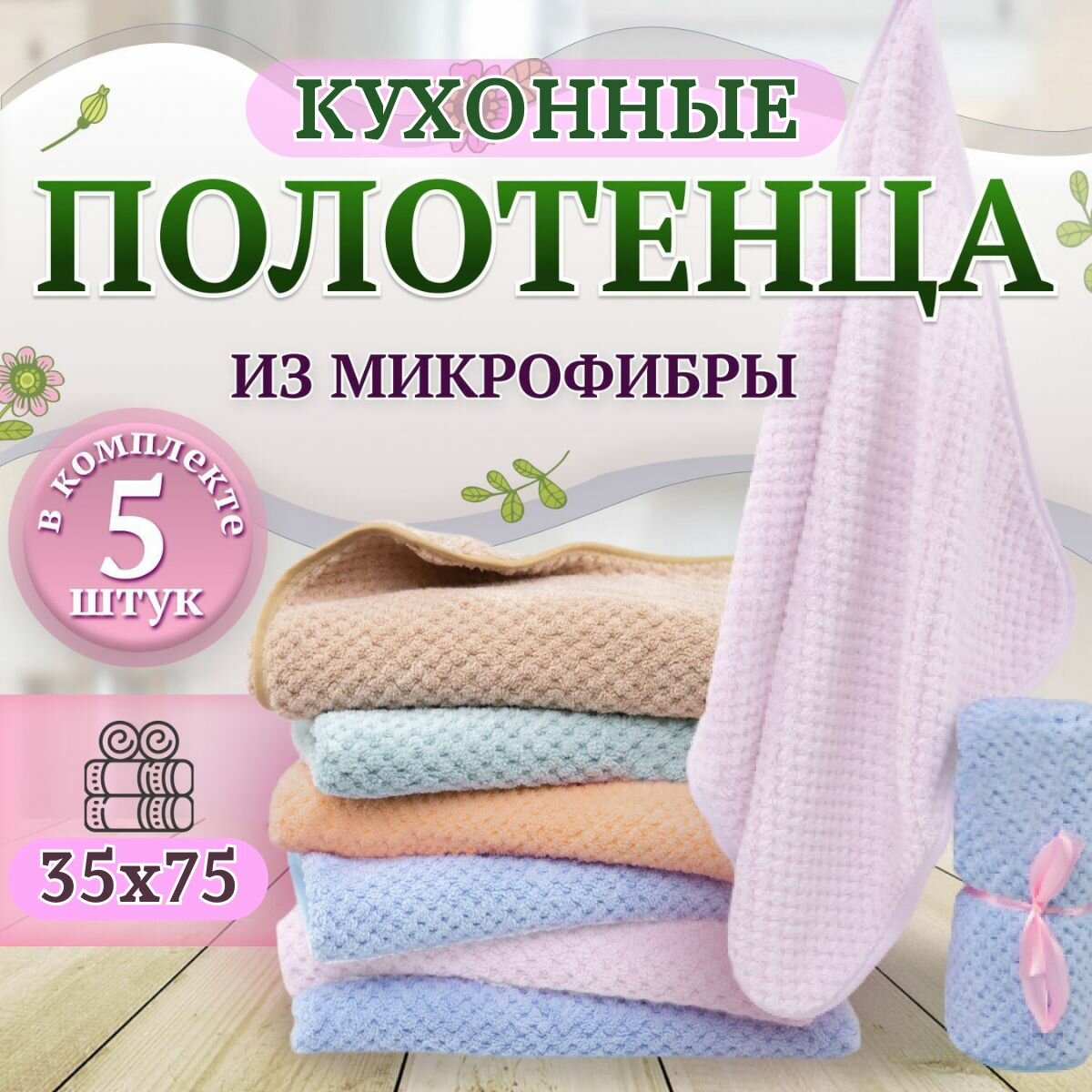 Купить Полотенца кухонные CASEROLUX набор из 5 шт , из микрофибры 35x75 / мягкие, однотонные с петелькой / для рук и лица