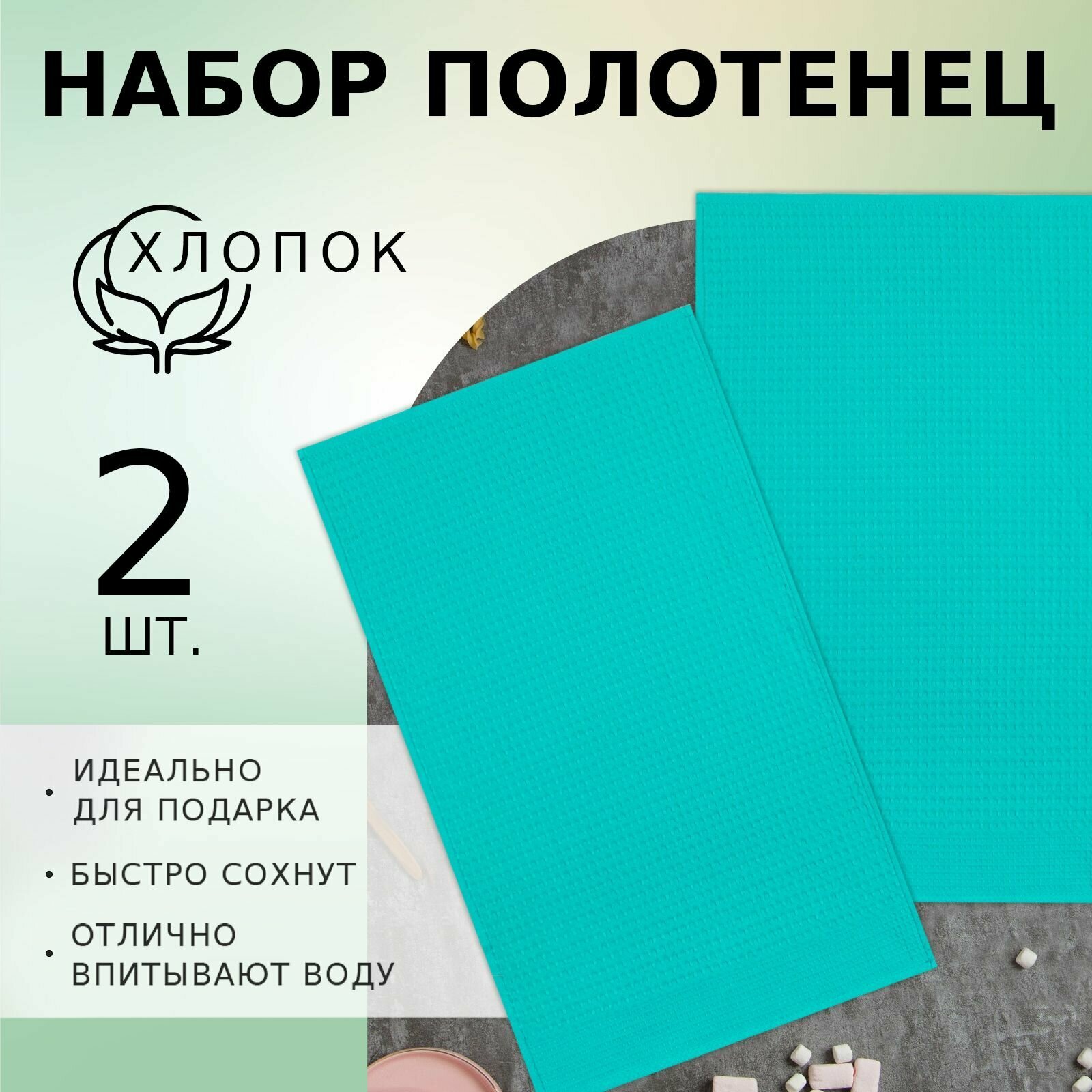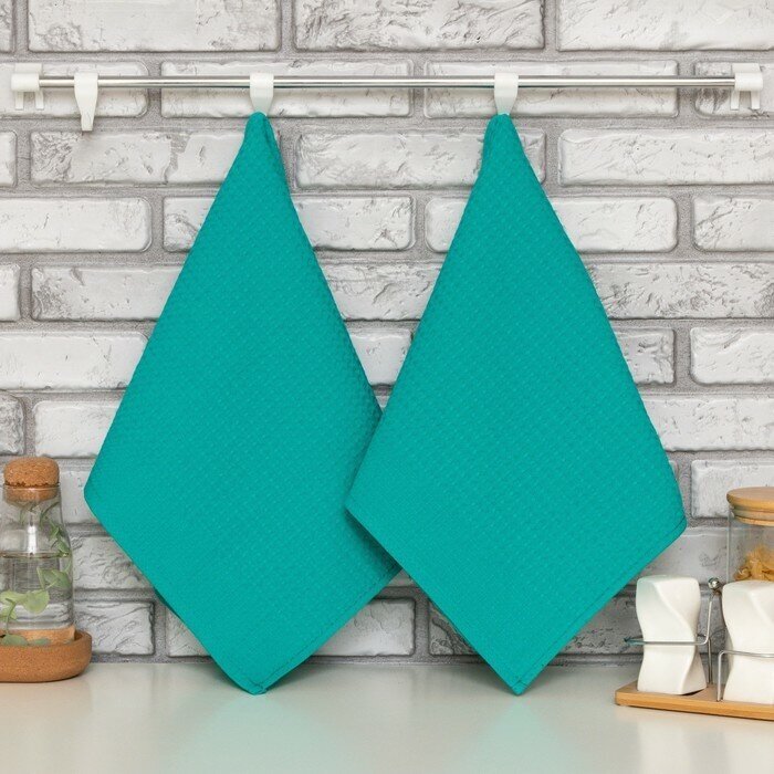 Купить Набор кухонных полотенец Доляна, цвет зелёный, 35х60см-2шт, 100% хл, вафля, 220 гр/м2
