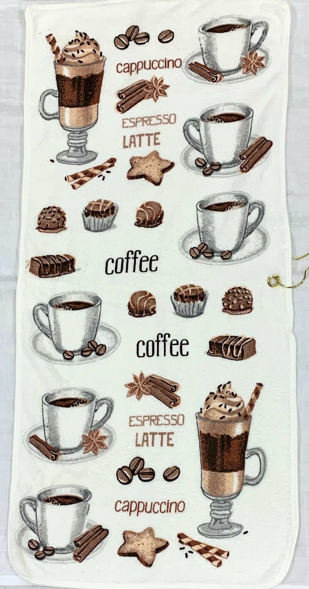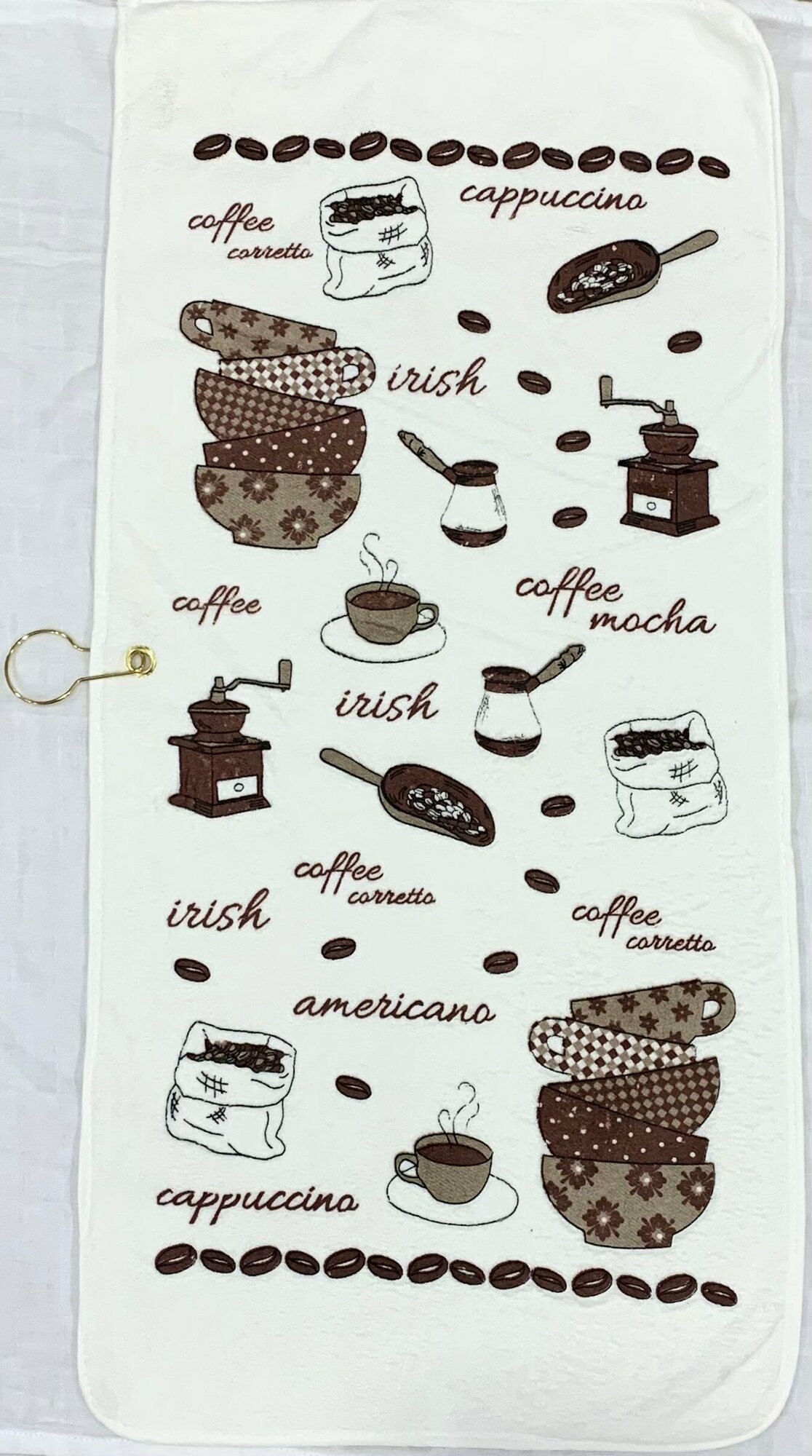 Купить Набор кухонных полотенец Кофе с крючком, белый кант, 35х70 см, 3 шт