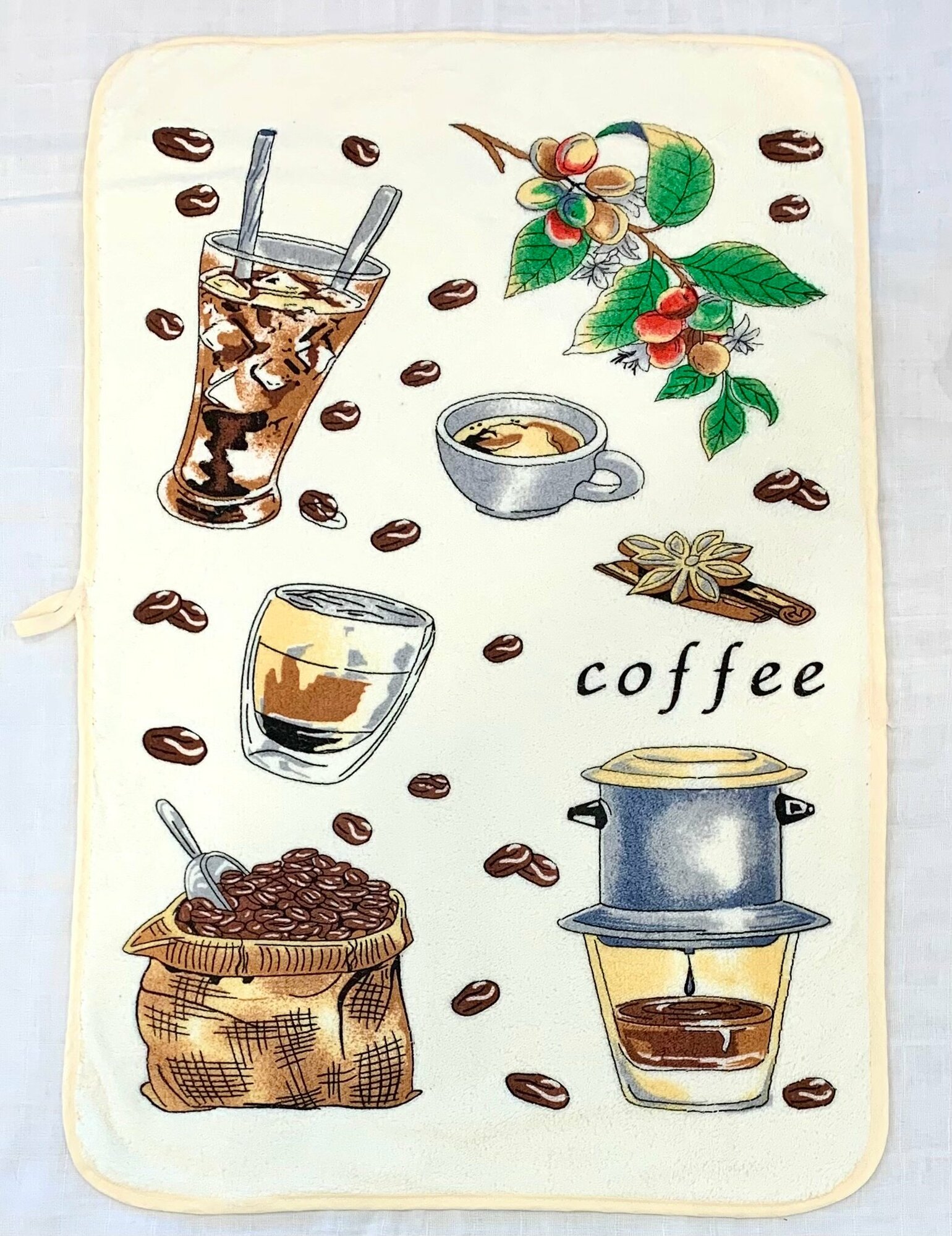 Набор кухонных полотенец Кофе с крючком, белый кант, 35х70 см, 3 шт