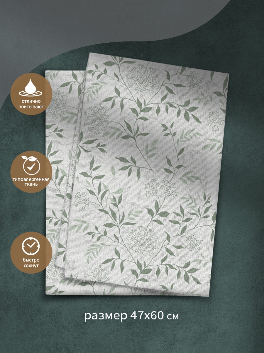 Набор полульняных полотенец Василиса 47х60 см - 3 штуки, Веточки , отбеленный