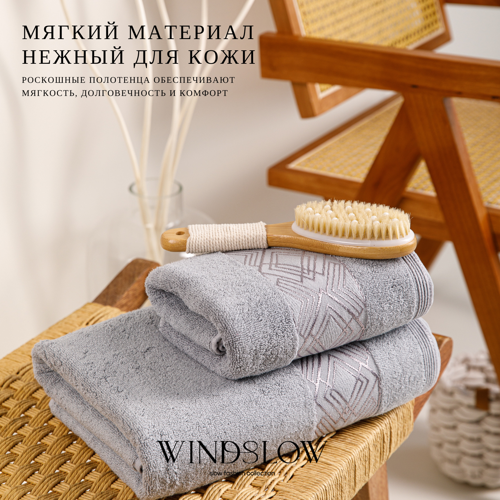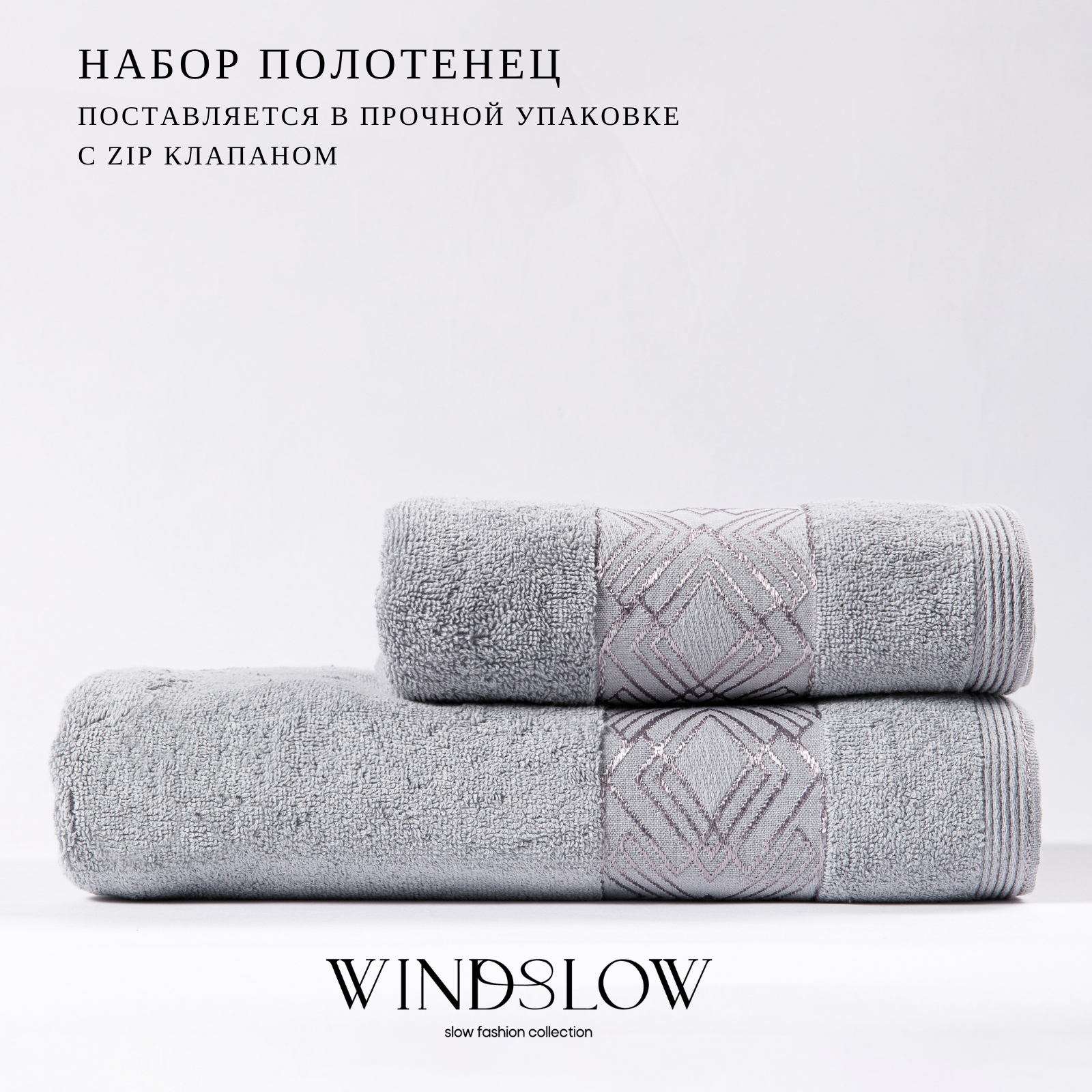 Комплект Полотенец Махровых WINDSLOW "Minimalistik" Grey Махра 50х90(1) 70х140(1) 2 шт.