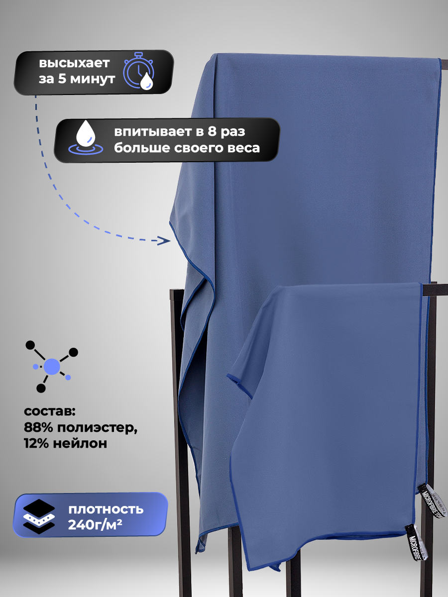 Набор спортивных полотенец OCEAS из микрофибры , быстросохнущее для фитнеса и йоги, 150х75 см, 40х80 см, синий