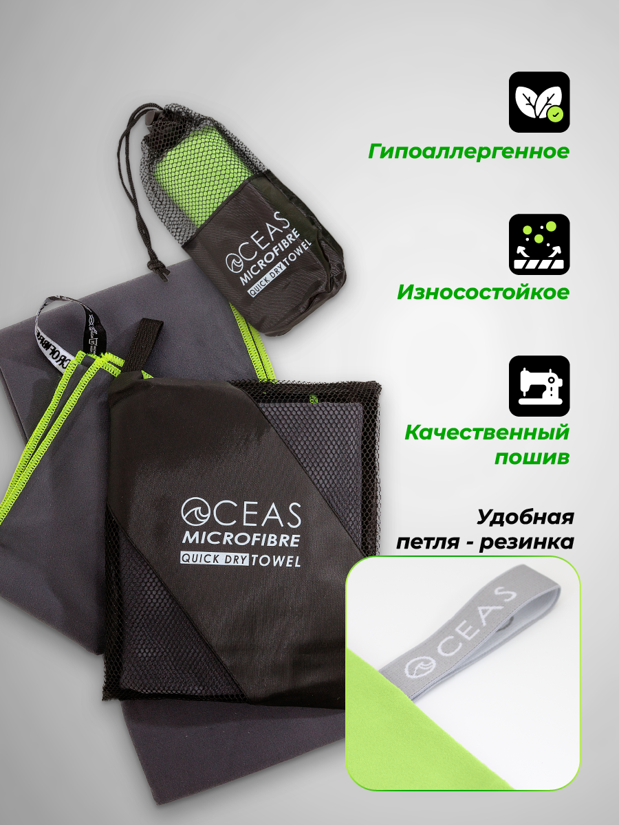 Набор спортивных полотенец OCEAS из микрофибры , быстросохнущее, 150х75 см, 40х80 см, серый, салатовый
