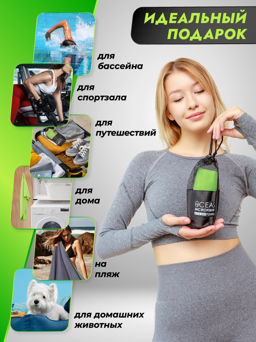 СохранитьНабор спортивных полотенец OCEAS из микрофибры ,быстросохнущее для фитнеса и йоги, 150х75 см, 40х80 см, серый, салатовый интересное: