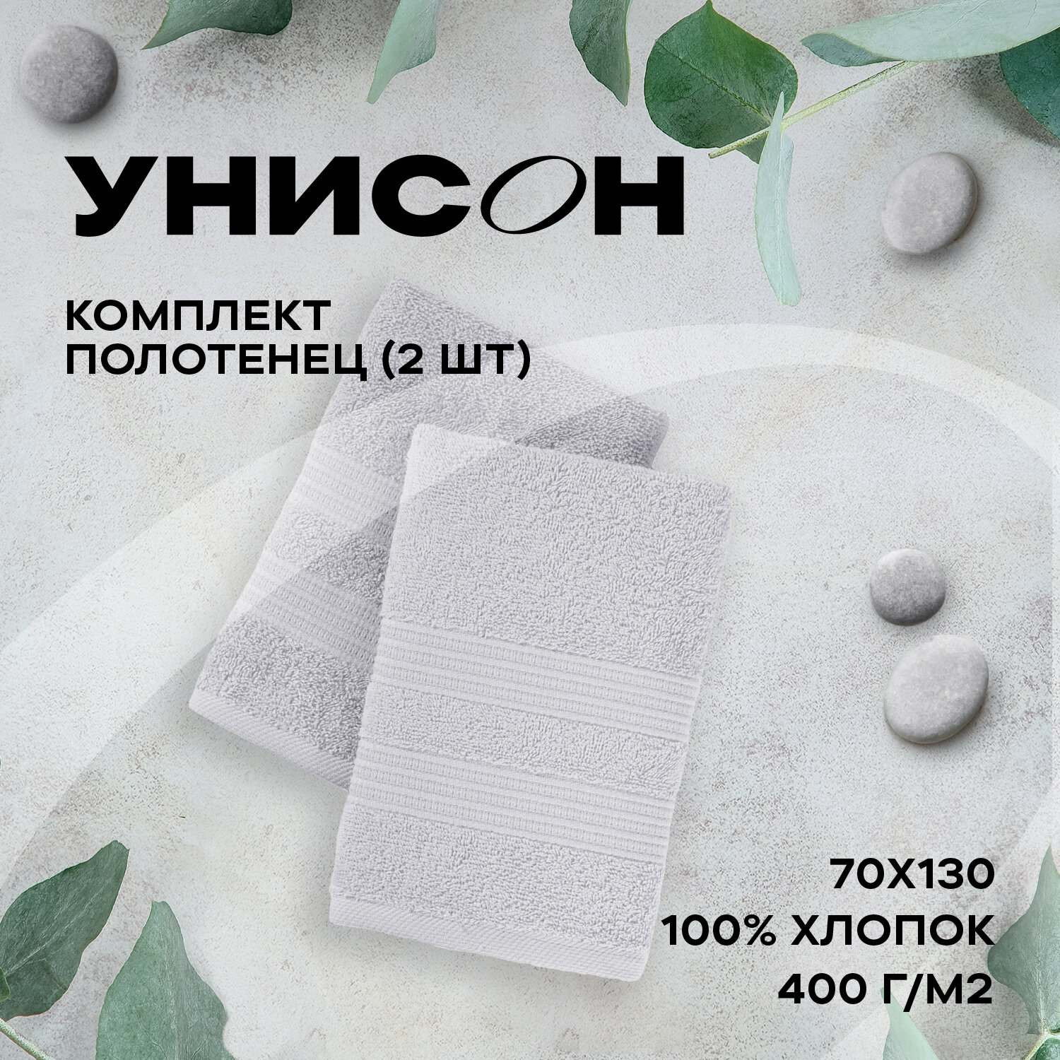 Комплект из 2х махровых полотенец (50х90;70х130) "Унисон" Resort серый / Махровое полотенце банное / для рук