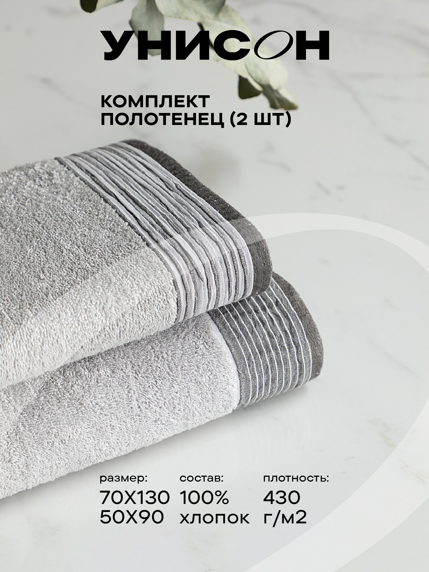 СохранитьКомплект из 2х махровых полотенец (50х90;70х130) "Унисон" Resort серый / Махровое полотенце банное / для рук интересное: