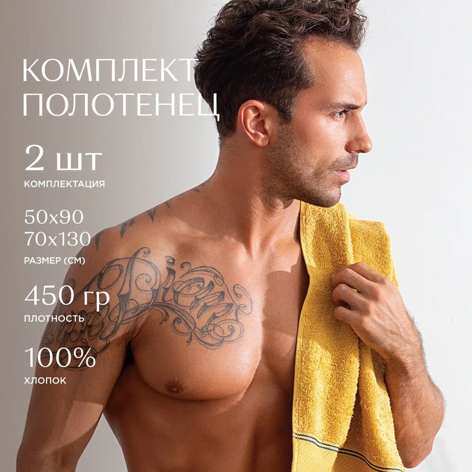 СохранитьКомплект из 2х махровых полотенец (50х90;70х130) "Унисон" Grand Prix горчичный интересное: