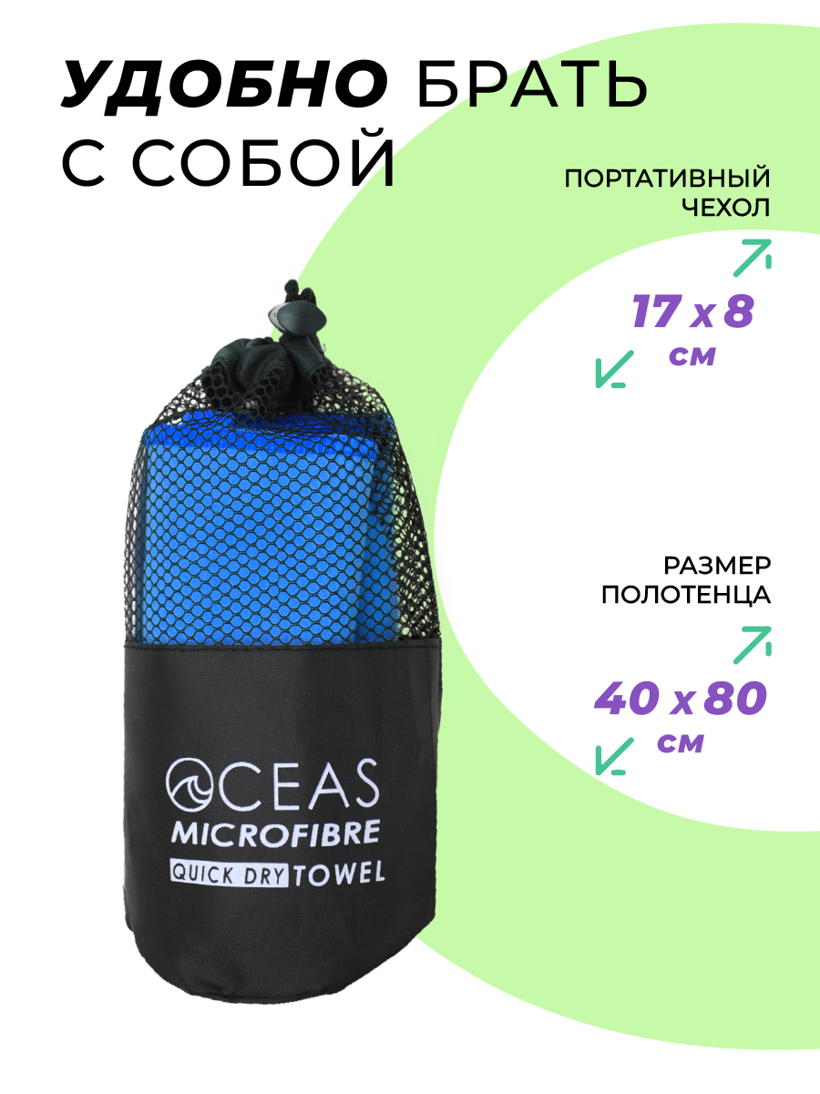 СохранитьПолотенце спортивное OCEAS из микрофибры ,быстросохнущее для фитнеса и йоги, 80х40 см, синий интересное: