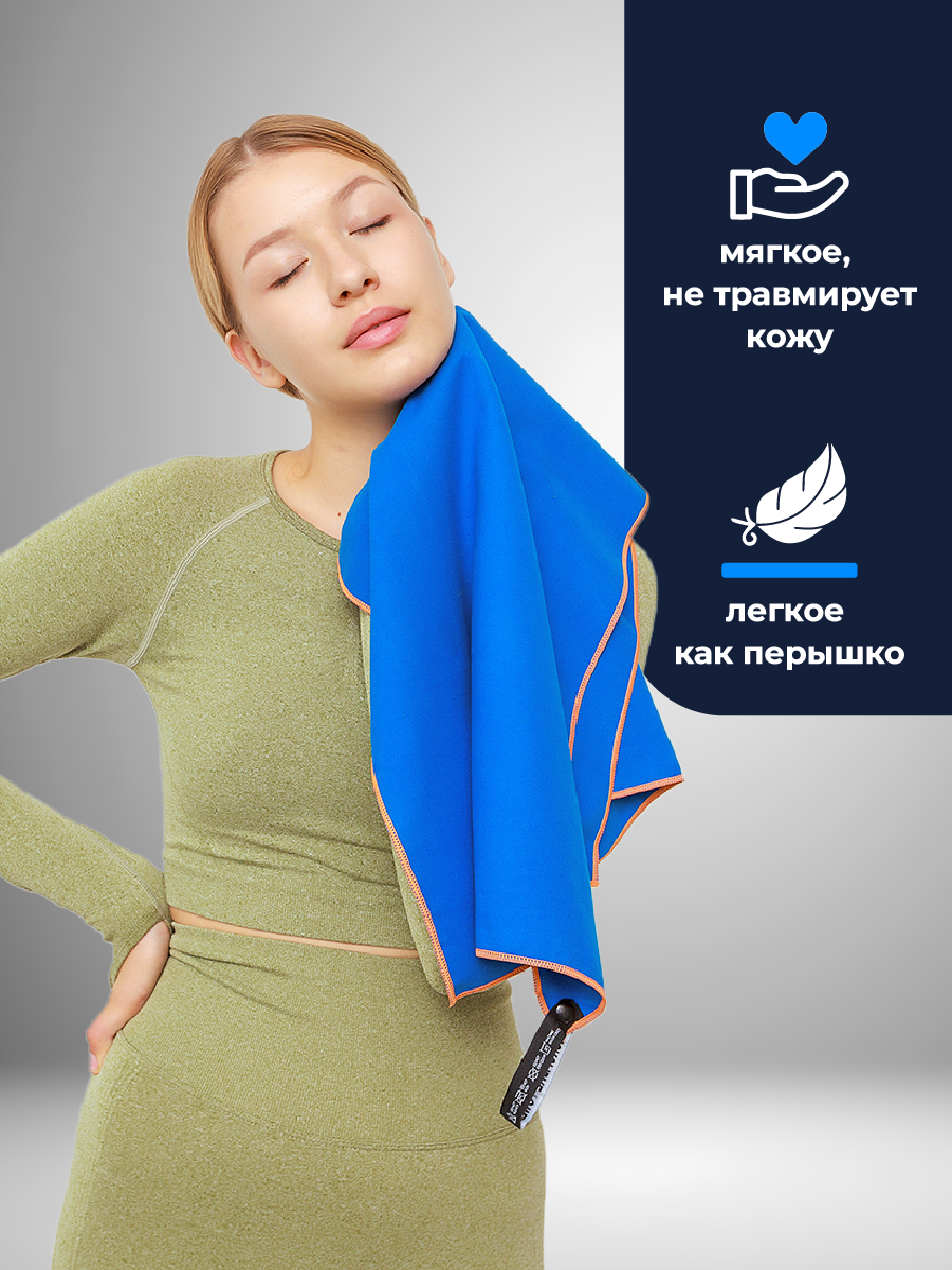 СохранитьПолотенце спортивное OCEAS из микрофибры ,быстросохнущее для фитнеса и йоги, 80х40 см, синий с оранжевой строчкой интересное: