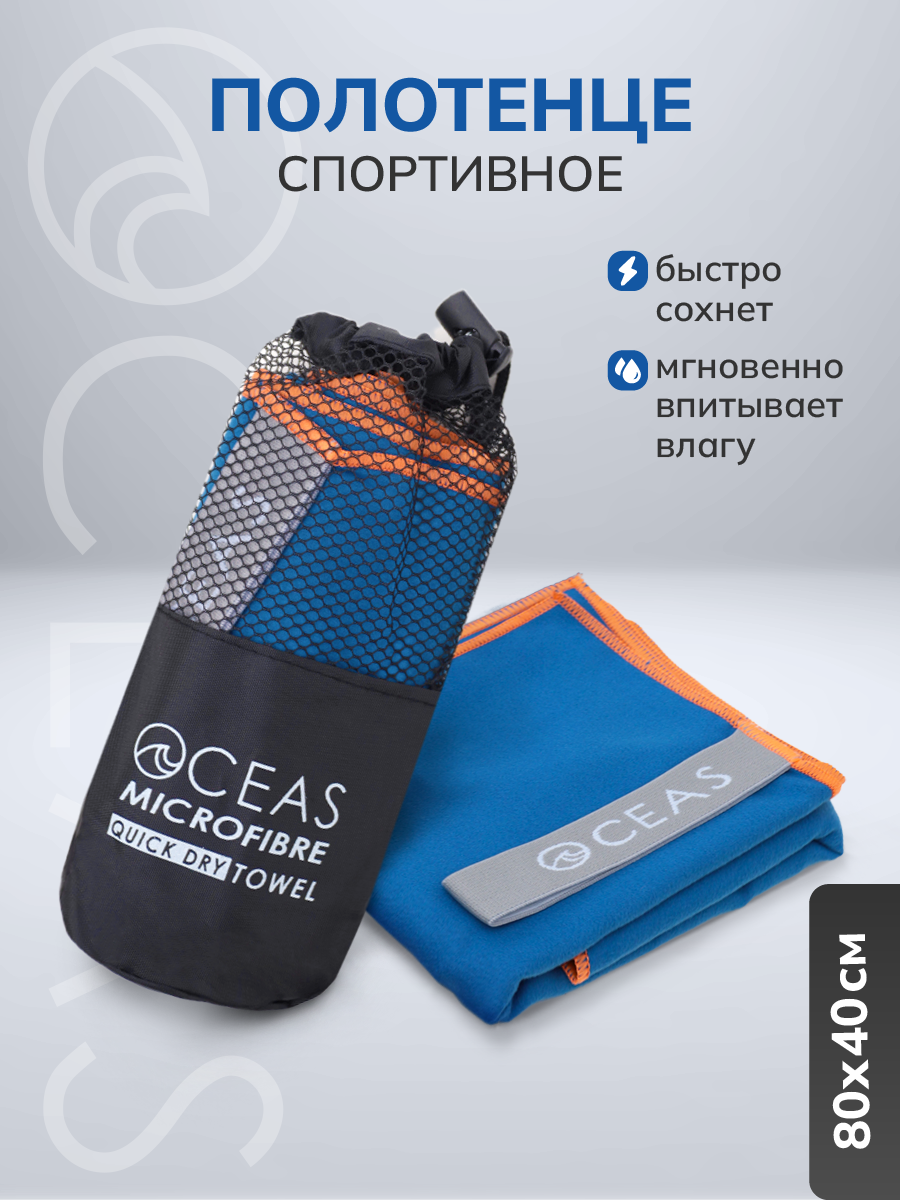 Полотенце спортивное OCEAS из микрофибры ,быстросохнущее для фитнеса и йоги, 80х40 см, синий