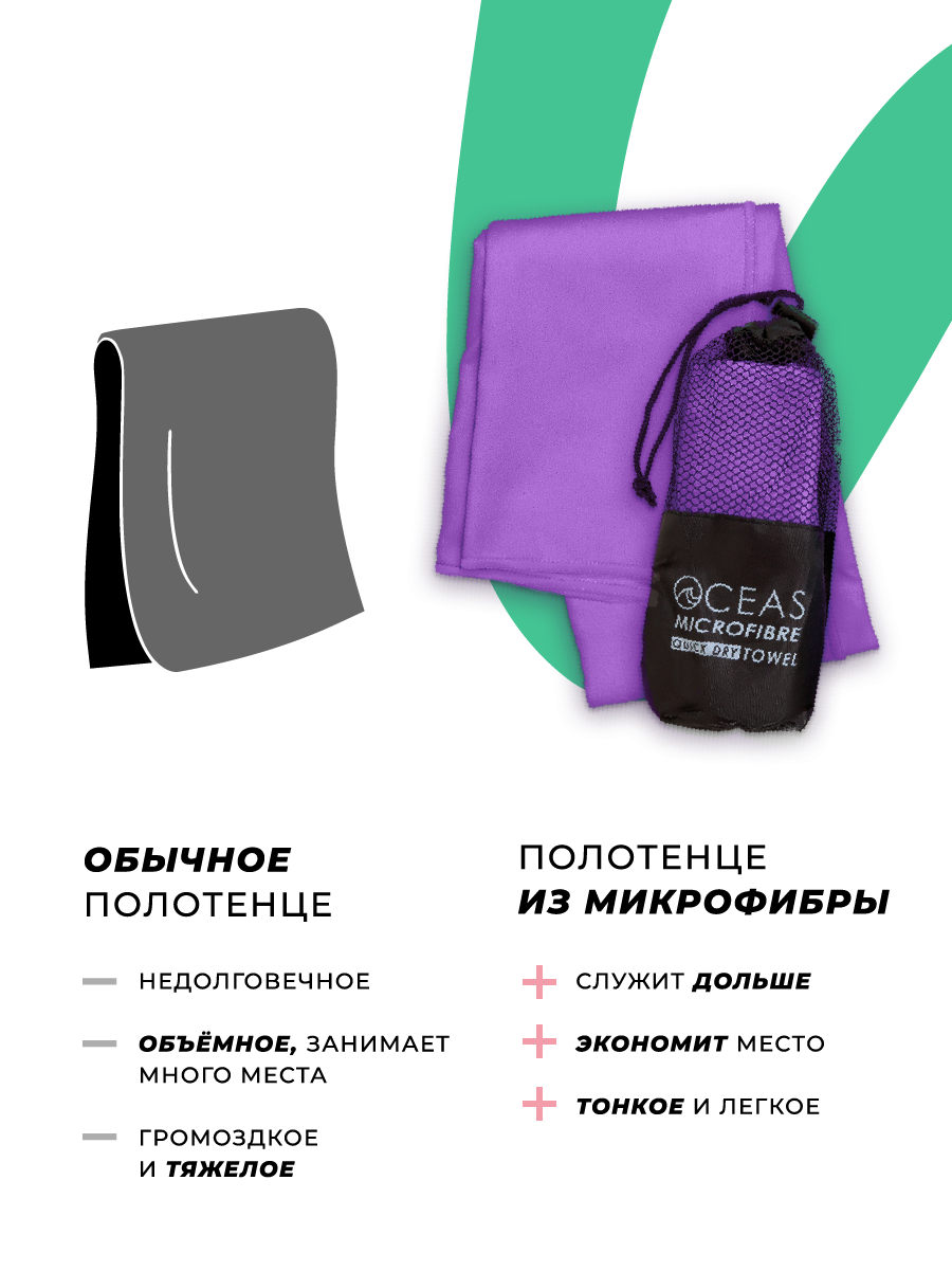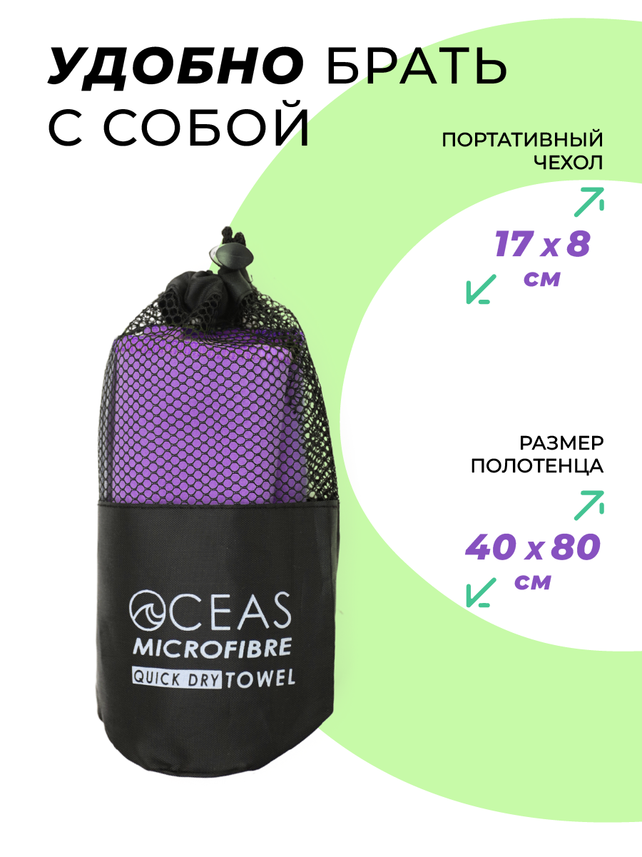 СохранитьПолотенце спортивное OCEAS из микрофибры ,быстросохнущее для фитнеса и йоги, 80х40 см, фиолетовый интересное: