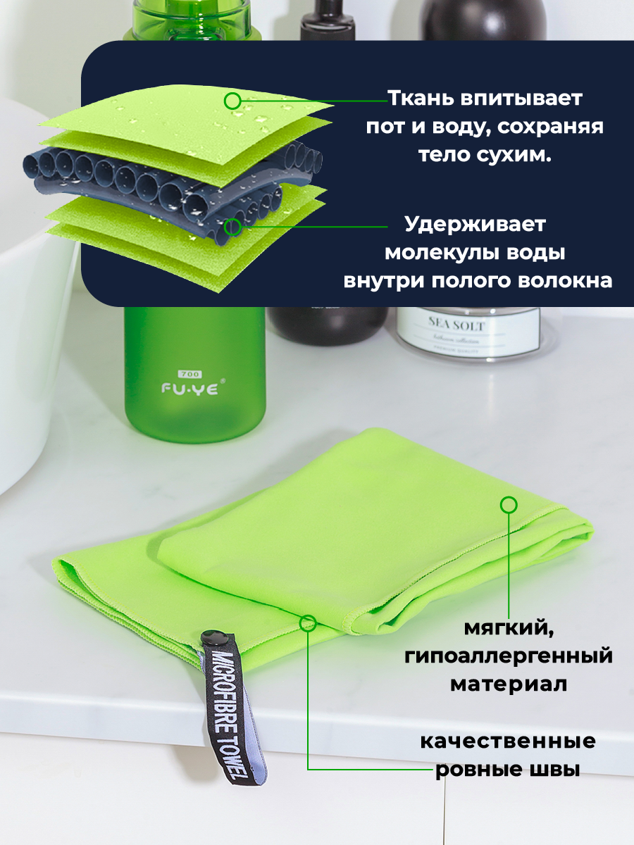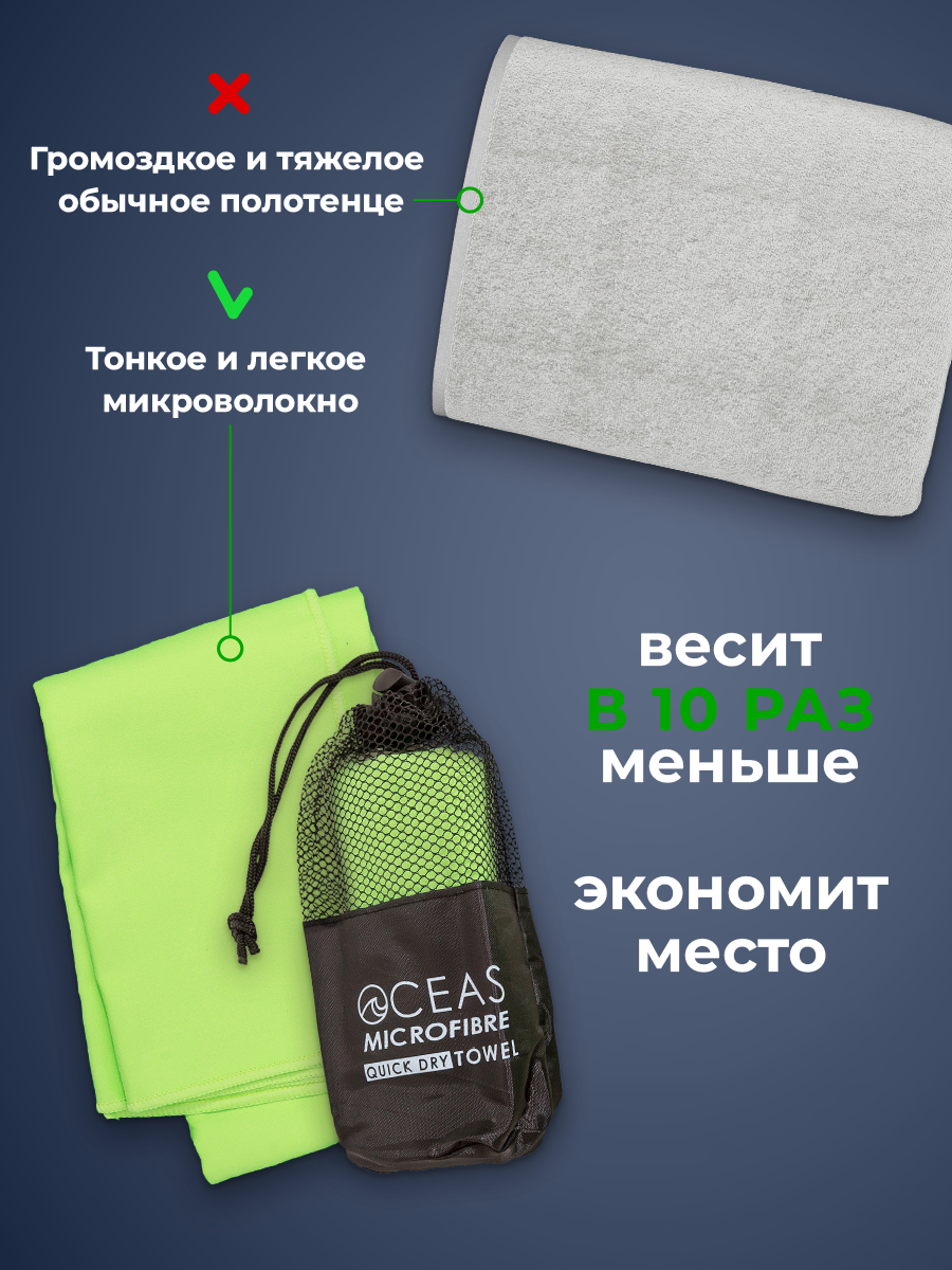СохранитьПолотенце спортивное OCEAS из микрофибры ,быстросохнущее для фитнеса и йоги, 80х40 см, салатовый интересное: