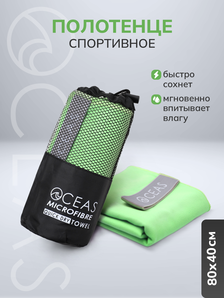Полотенце спортивное OCEAS из микрофибры , быстросохнущее для фитнеса и йоги, 80х40 см, салатовый