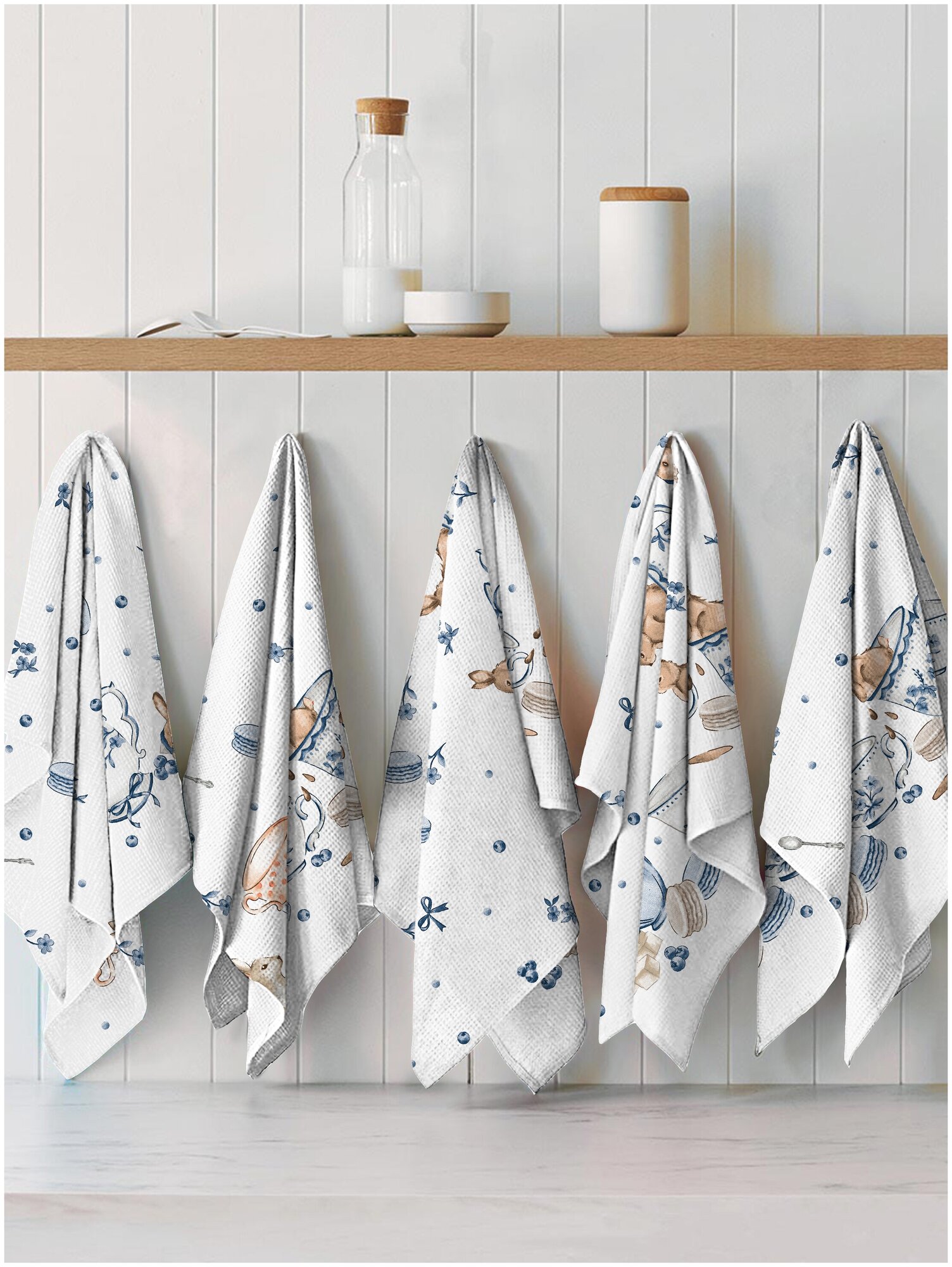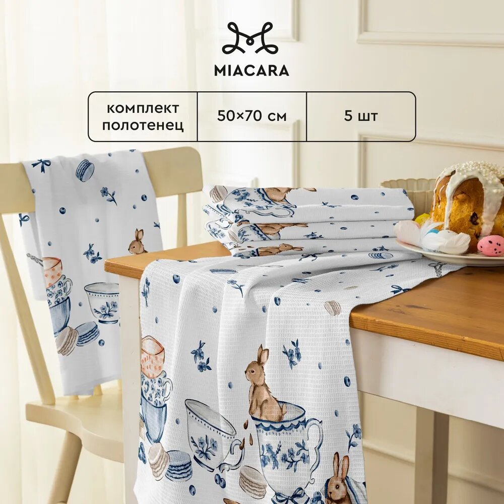 Комплект вафельных полотенец 50х70 (5 шт.) "Mia Cara" рис 30392-1 Зайчики интересное: