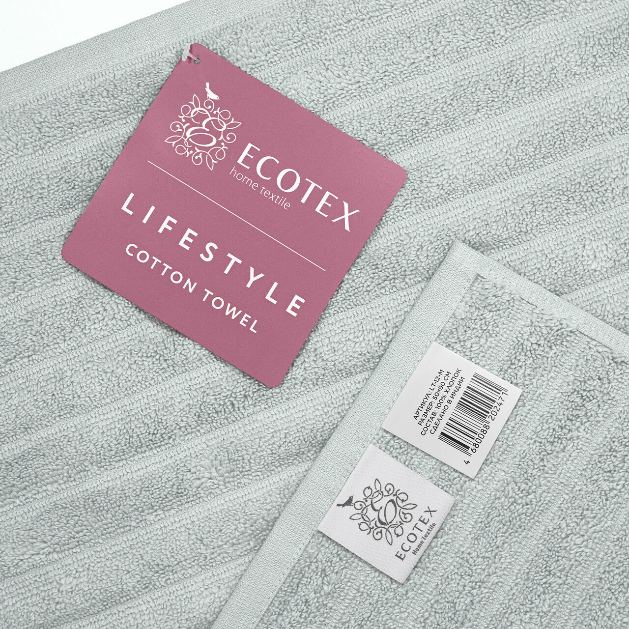 Купить Полотенце махровое Ecotex "Лайфстайл" 50x90 светло-серый