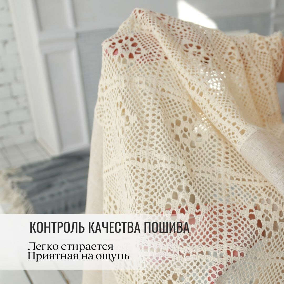 Скатерть тканевая бежевая на круглый или квадратный кухонный стол 140*140 кружево интересное: