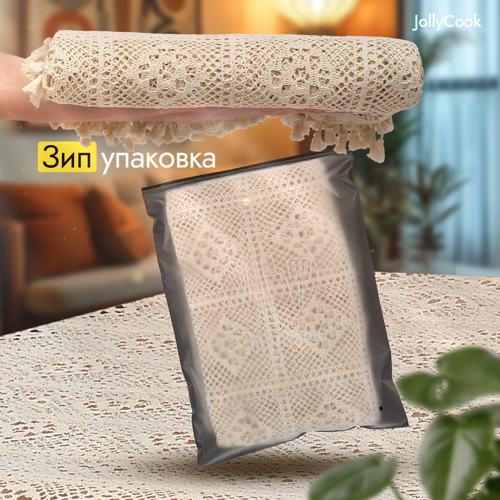 Скатерть JollyCook на кухонный стол 140х160 см, бежевая, с кружевом, прямоугольная интересное: