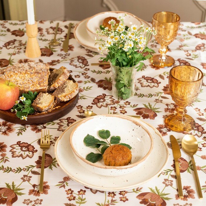 Скатерть Доляна "Магнолия" 146х110см, рогожка 158 г/м2, 50% хл, 50% пэ Доляна 9828475 .