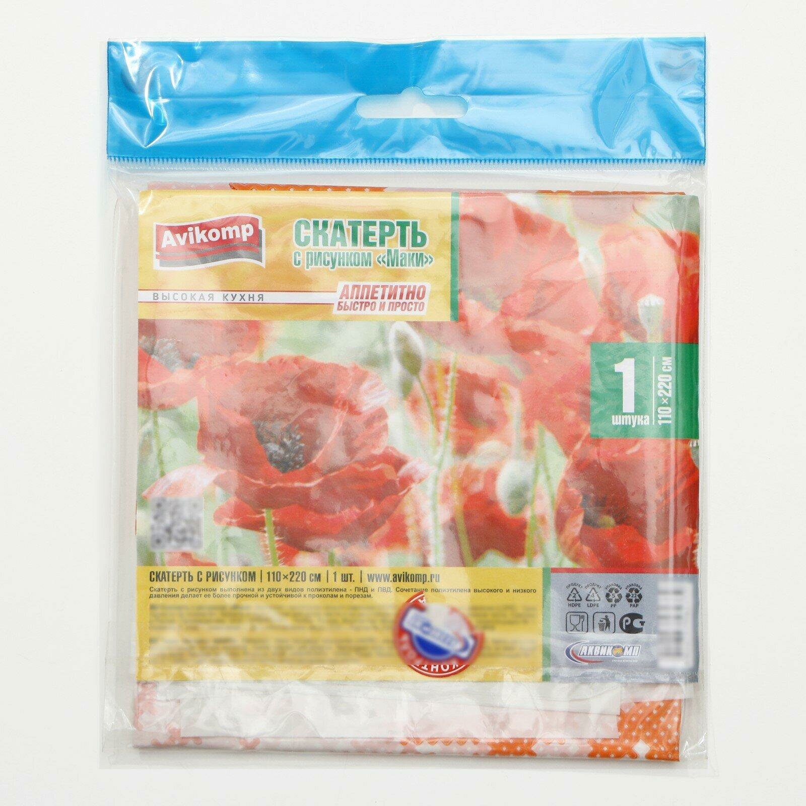 Скатерть без основы одноразовая «Маки», 110×220 см, рисунок микс интересное: