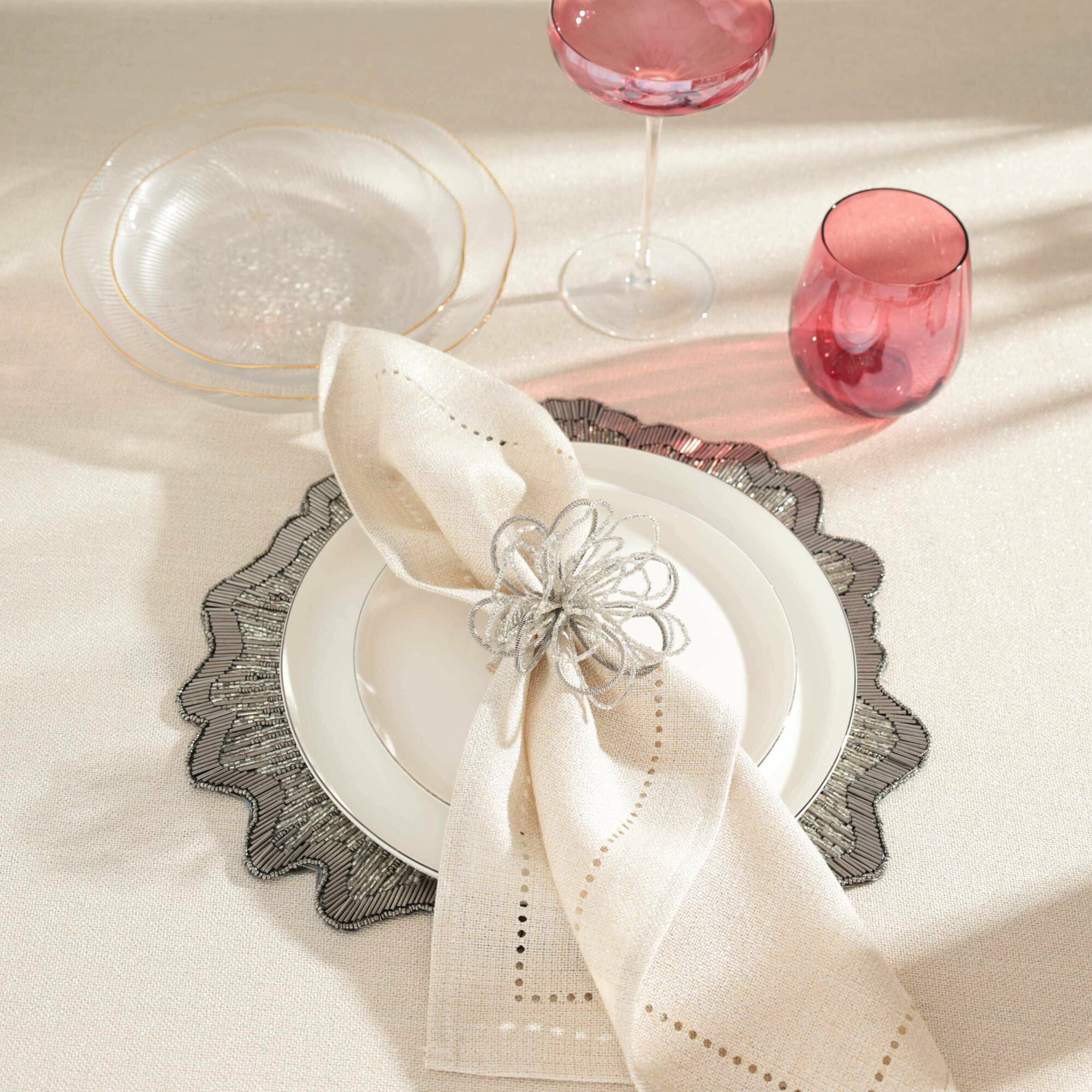 (W)Салфетка под приборы, 36 см, бисер, круглая, серо-серебристая, Art beads-t интересное:
