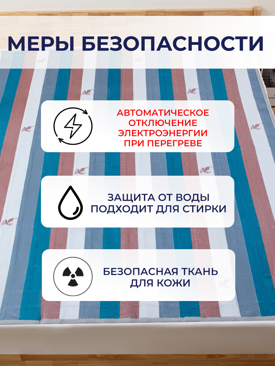 Одеяло с подогревом электрическое инфракрасное с тремя температурными режимами разноцветная полоска флисовое 65 W 1.5*0.8 м интересное: