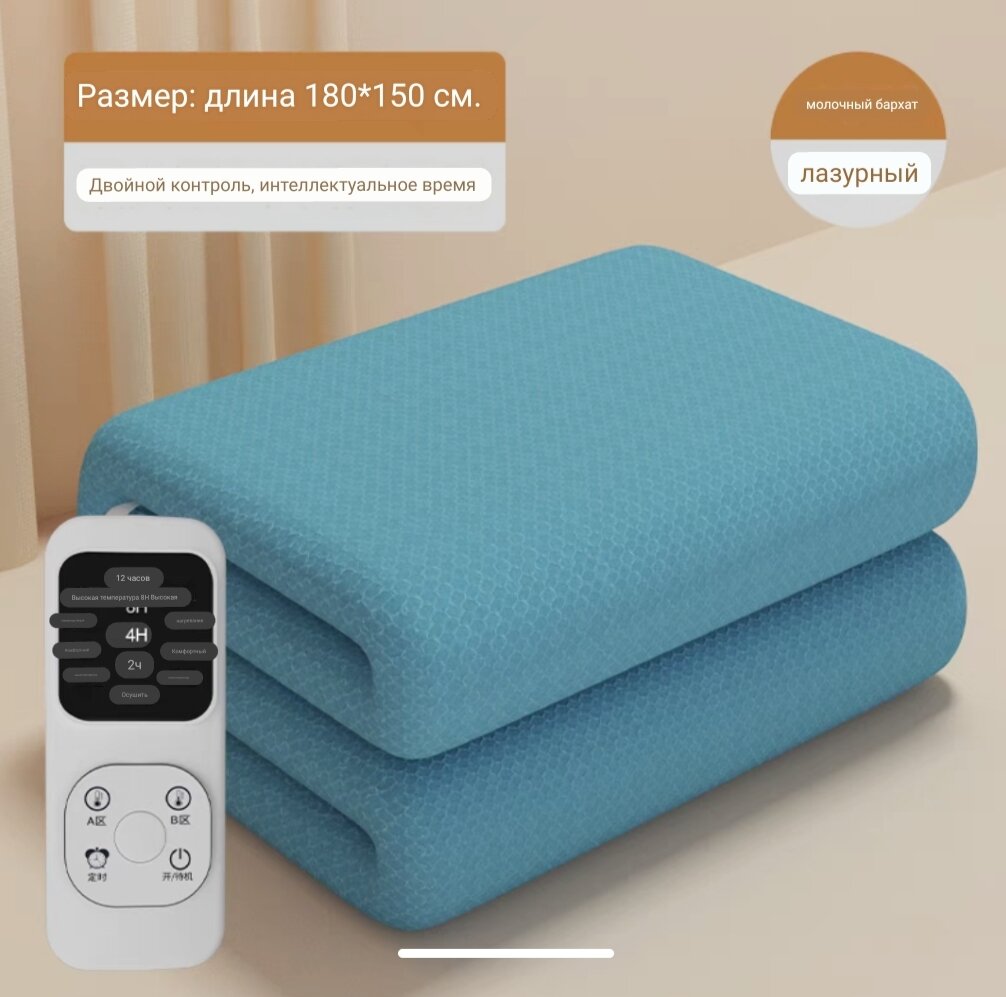 Одеяло электрическое с двумя зонами обогрева, пультом, 4 режима нагрева, серо-голубое интересное: