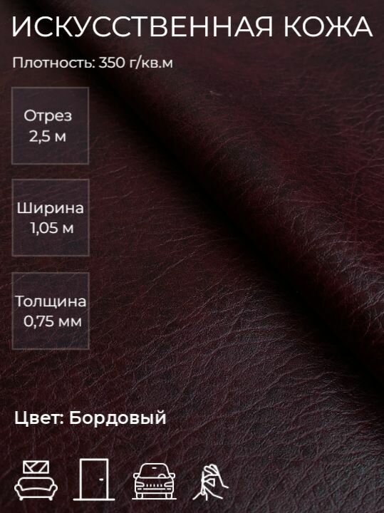 Купить Экокожа или искусственная кожа для рукоделия, мебели, двери, интерьера. Отрез 2,5м, Ширина 1,05м, Плотность 350 г/м2. Цвет: Бордовый