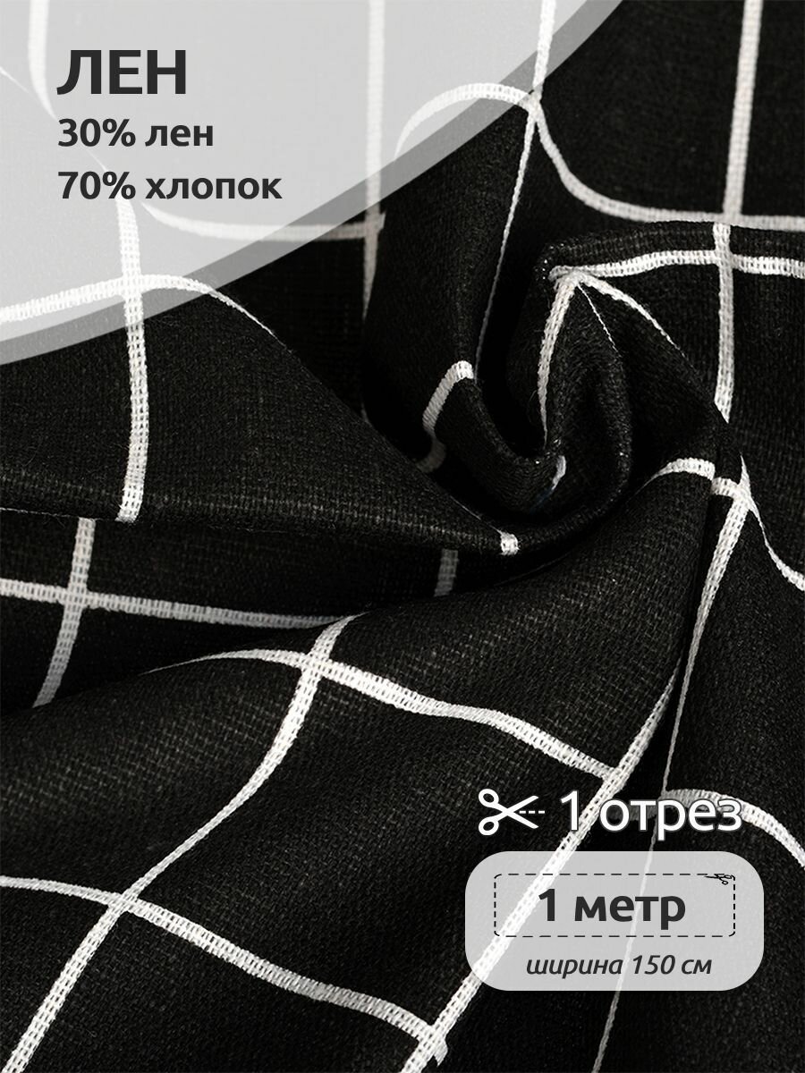 Ткань Лен, арт.TBY-DJ-13-1, 140г/м², 30% лен 70% хлопок, шир.150см, цв.черный уп.3м