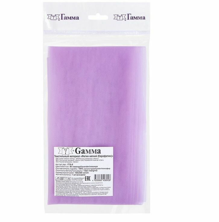 Фатин мягкий (Еврофатин) "Gamma" FTS-E 13 г/кв. м ± 1 100 см х 300 см ± 2 см 100% полиэстер 96 лаванда
