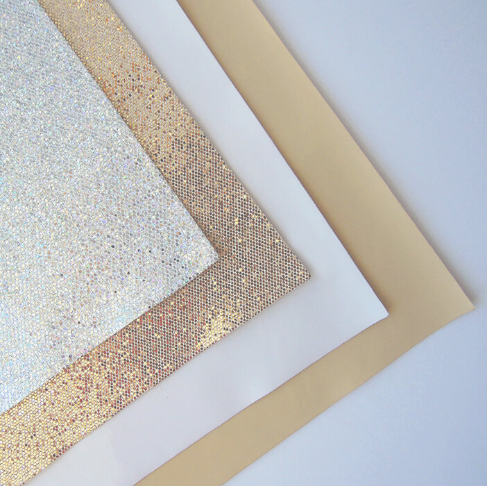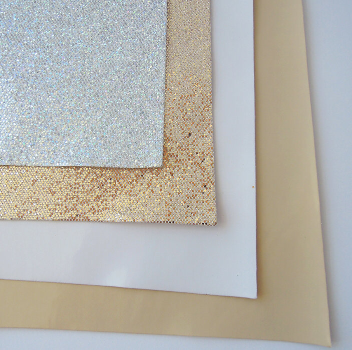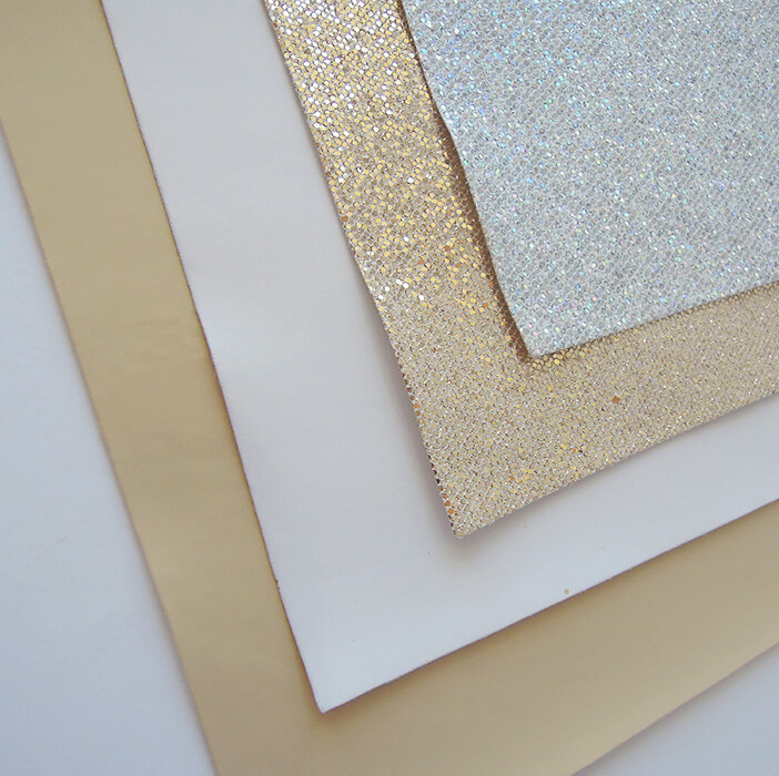 Кожа искусственная для рукоделия, набор Глиттер с тиснением, 4 листа