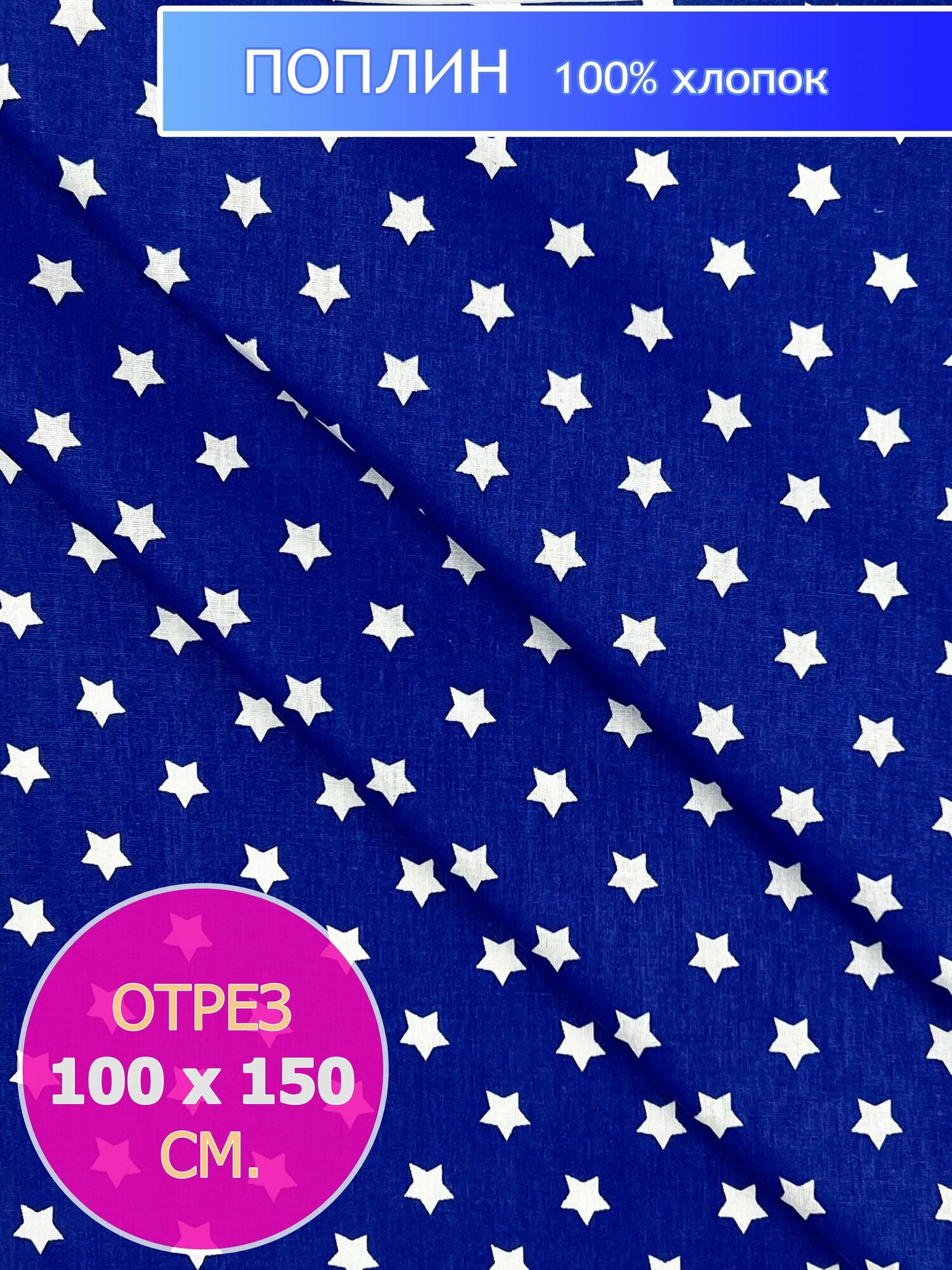 Купить Ткань хлопковая Поплин, Звезды на Синем, отрез 1х1,5 м