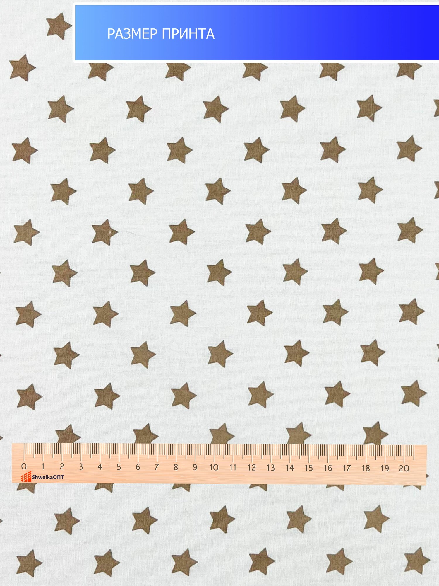 Купить Ткань хлопковая Поплин, Коричневые Звезды на Белом, отрез 1х1,5 м