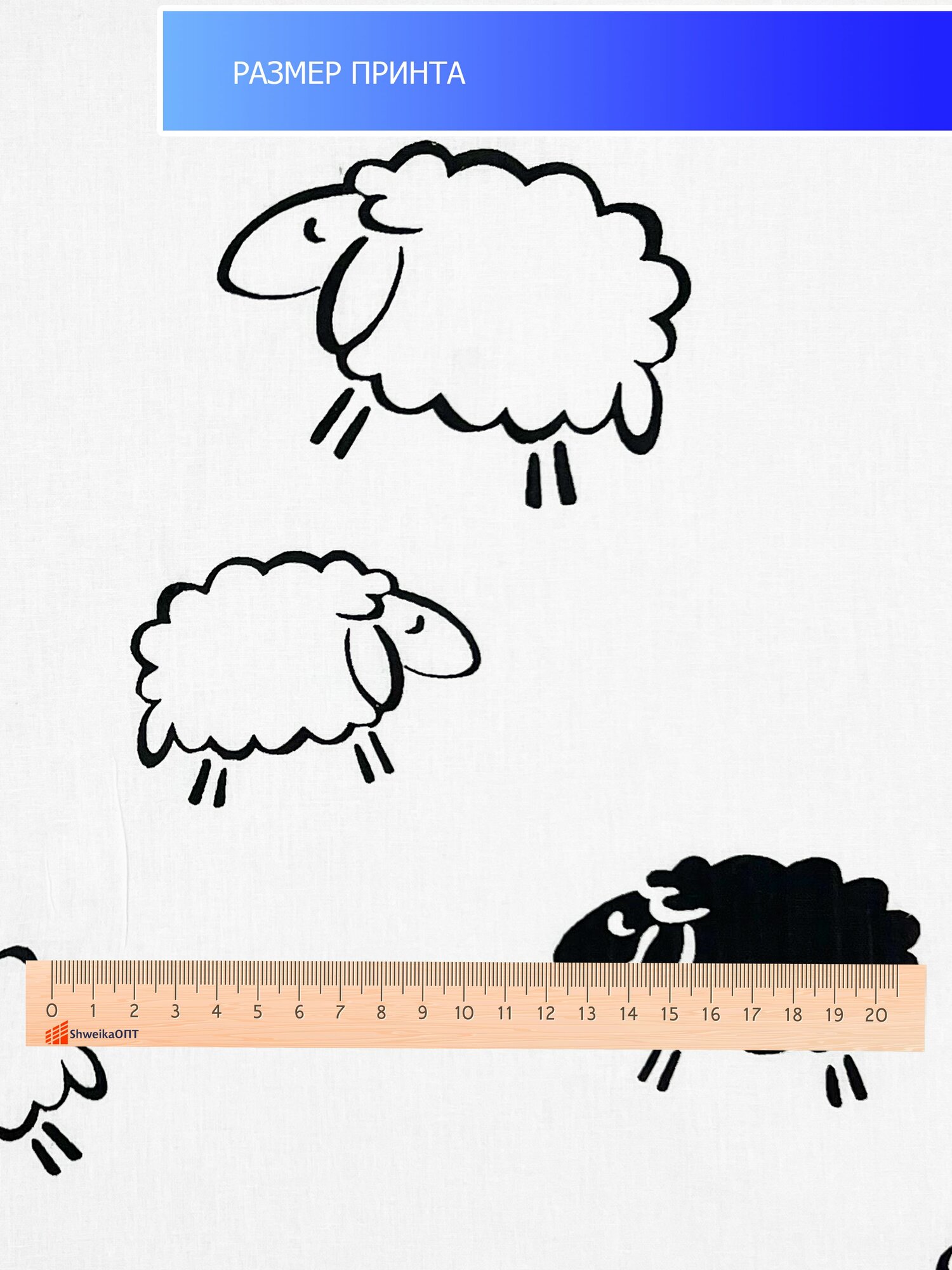 Купить Ткань хлопковая Поплин, Овечки, отрез 1х1,5 м