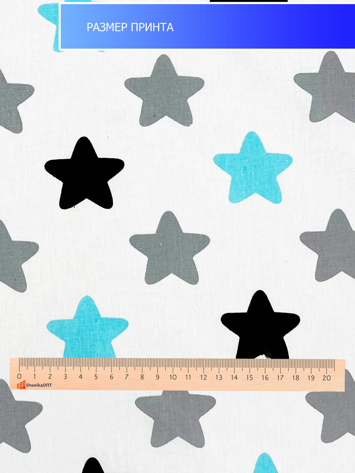 Ткань хлопковая Поплин, Звезды на Сером, отрез 1х1,5 м