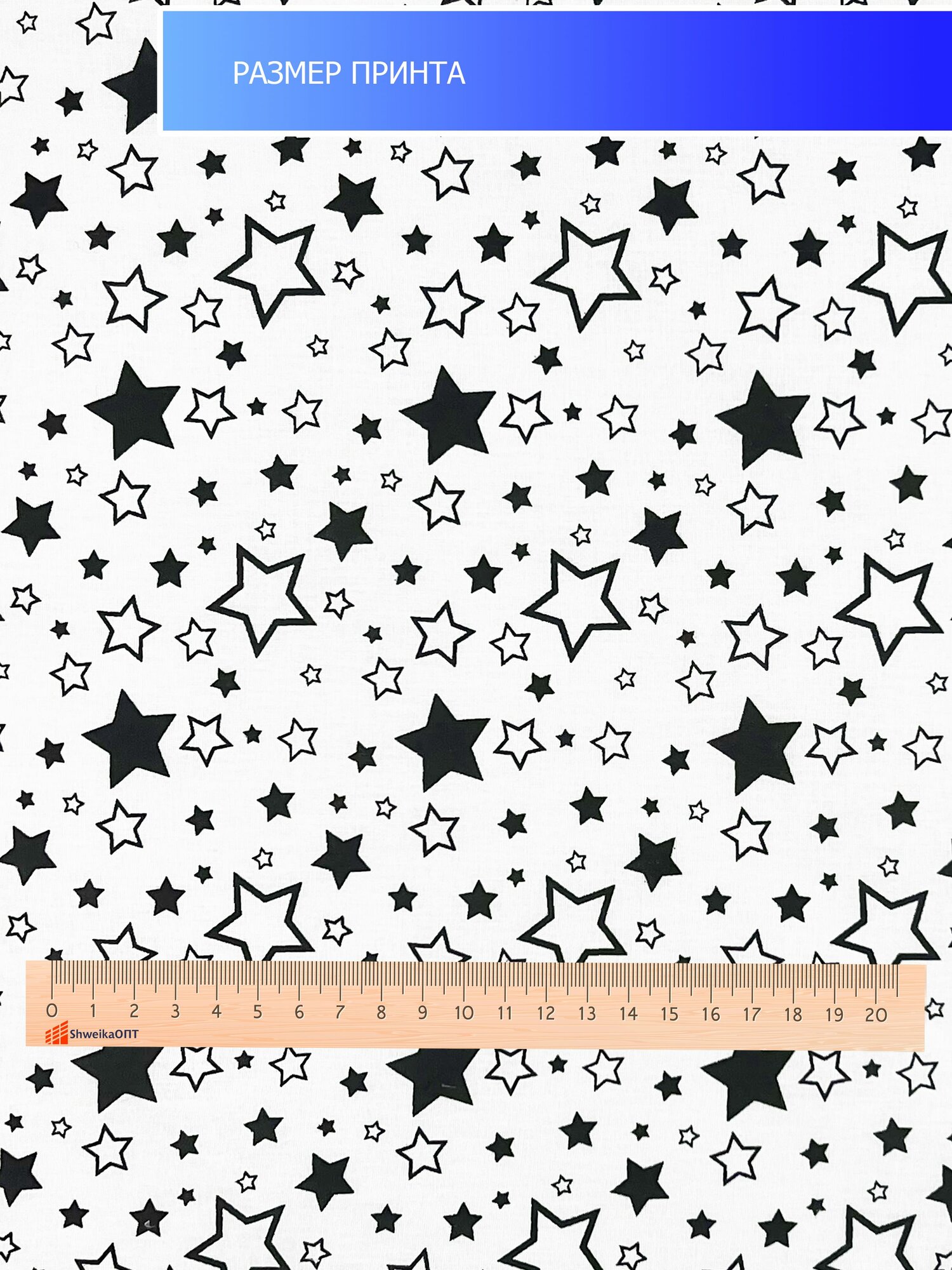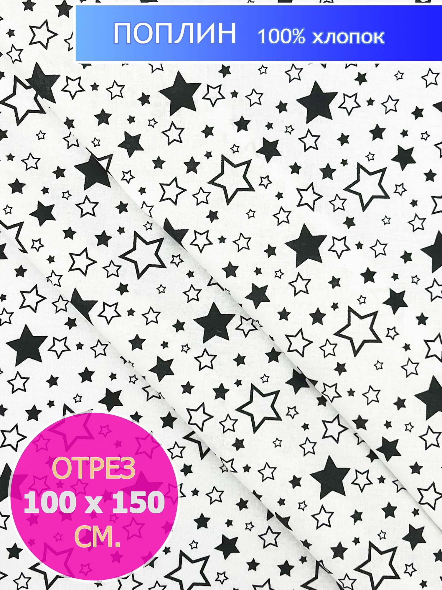Ткань хлопковая Поплин, Звезды на Белом, отрез 1х1,5 м
