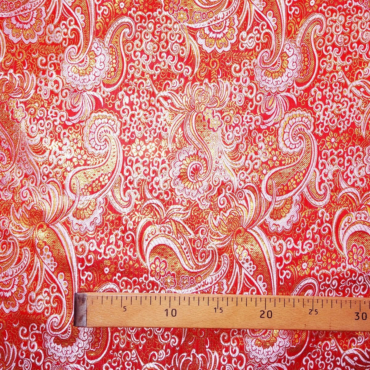 Ткань плательная "Дед Мороз (парча, красная)". Отрез длиной 1.5 м.