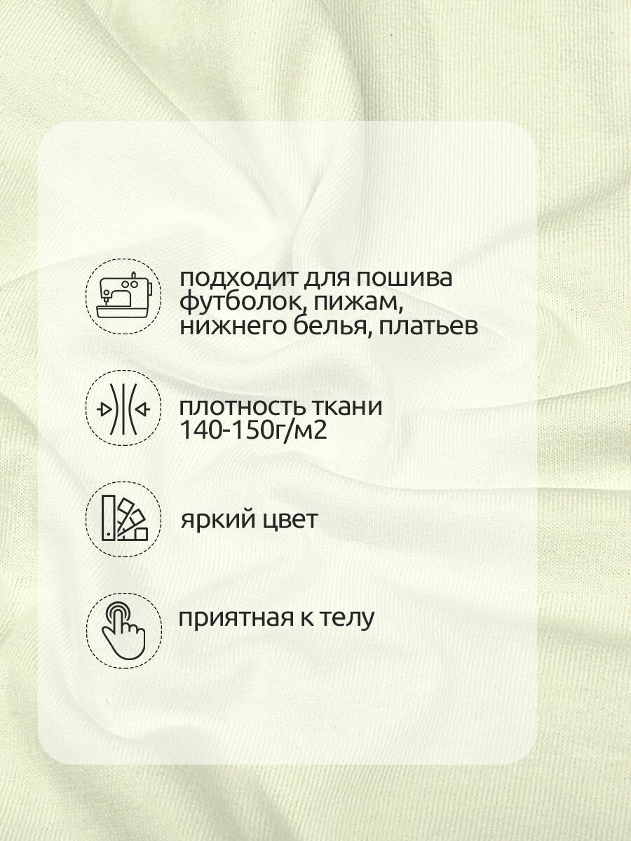 Ткань трикотаж кулирка 100% Хлопок, для футболки, пижамы, плотность 140 г/м2, ширина 1,8 м