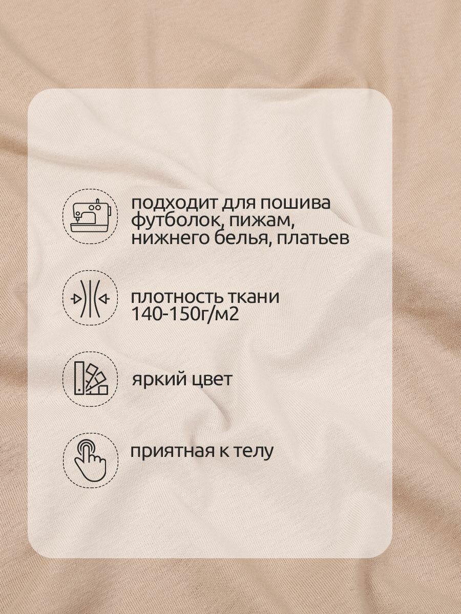 Ткань трикотаж Кулирка хлопок 145г опененд 100+100см миндаль 14-0936 уп.1м