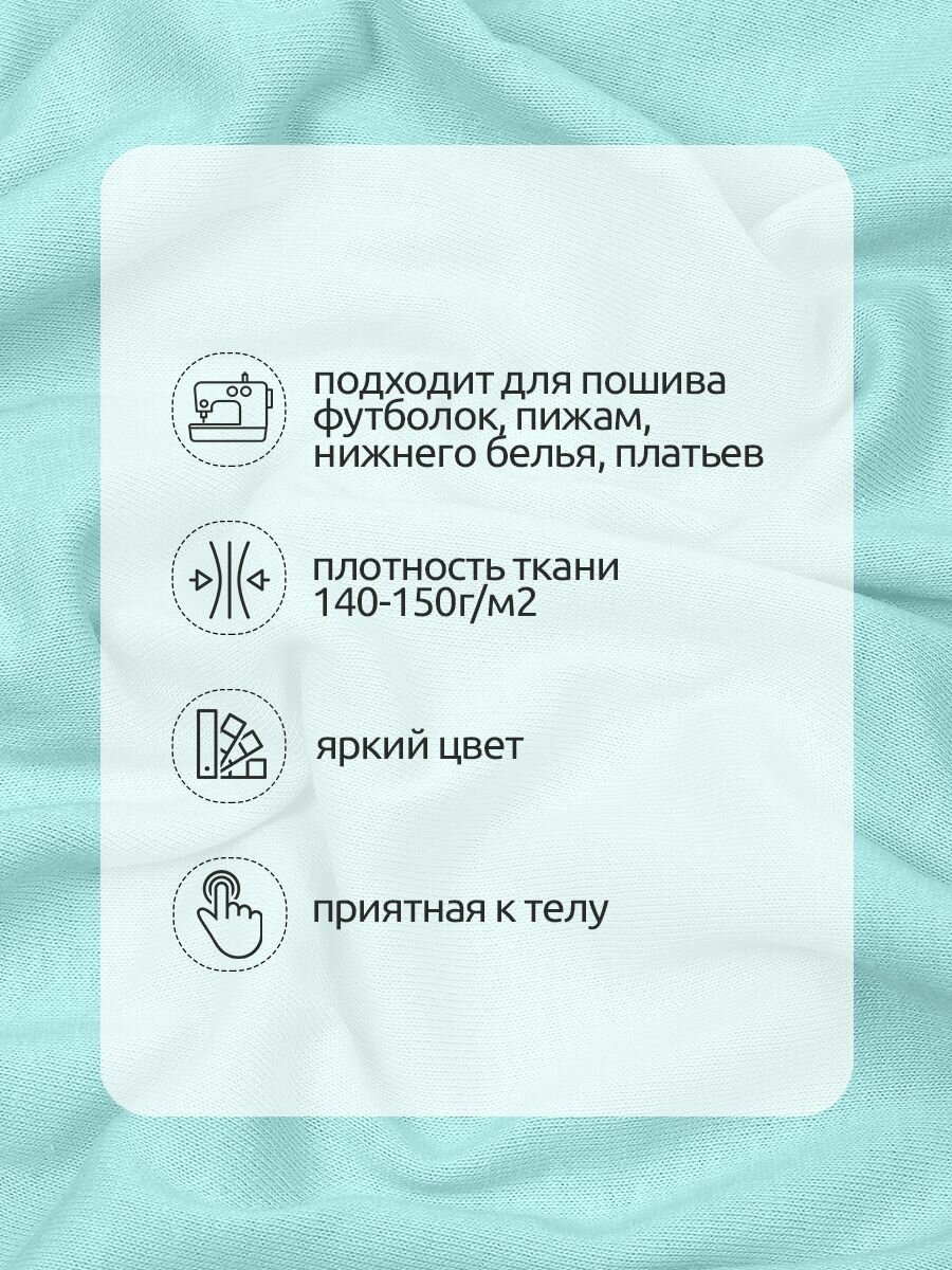 Ткань трикотаж Кулирка хлопок 145г опененд 100+100см мята 13-6009 уп.1м