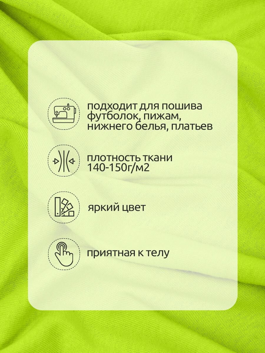 СохранитьТкань трикотаж Кулирка хлопок 145г опененд 100+100см салатовый 13-0535 уп.1м интересное: