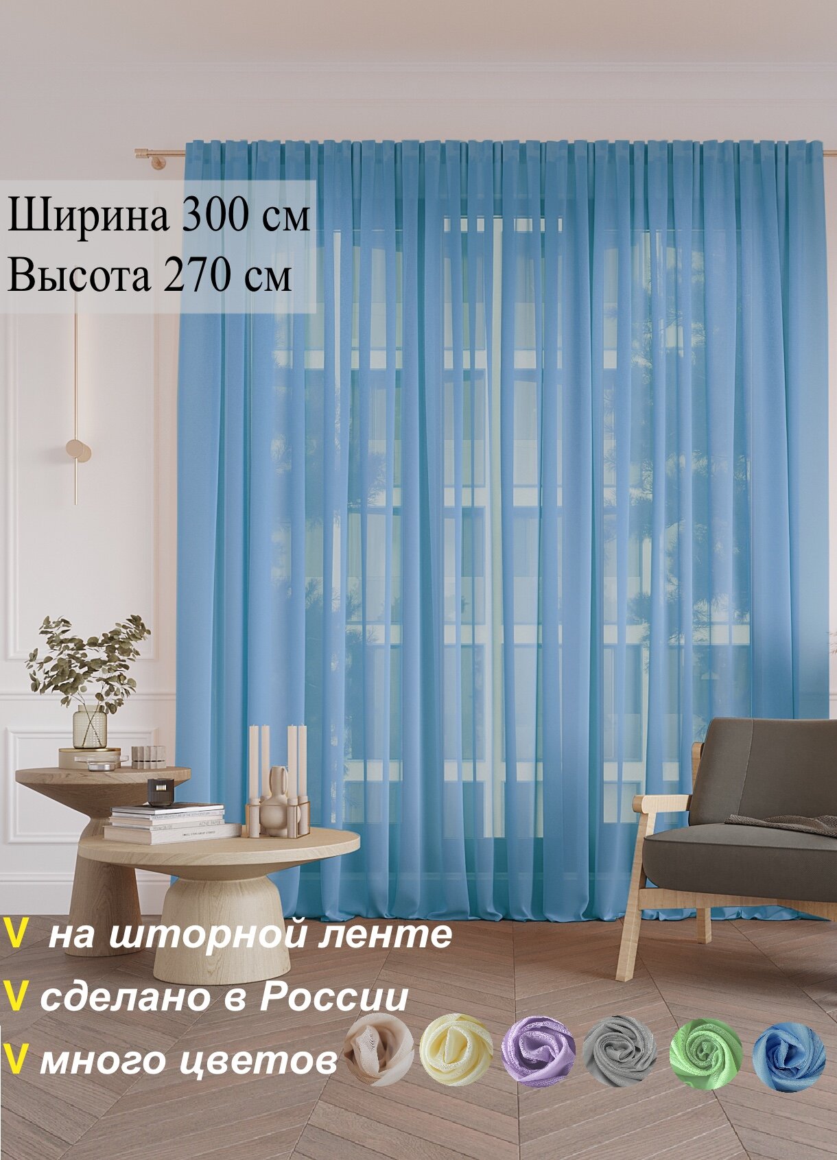 Тюль для гостиной 300 х 270 см