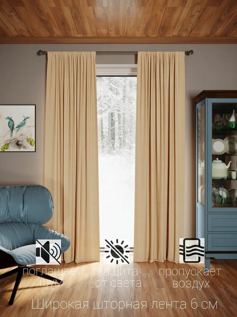 СохранитьTIDA /Шторы блэкаут комплект, 2шт 200*250 Бежевый интересное: