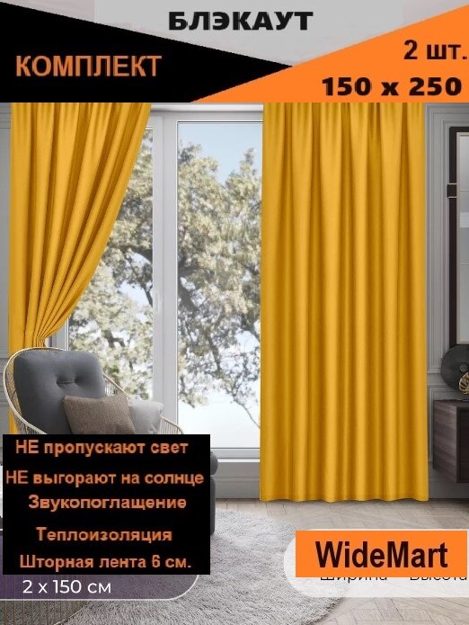 СохранитьTIDA Blackout TIDA /Шторы блэкаут комплект, 2шт 150*250 Желтый интересное: