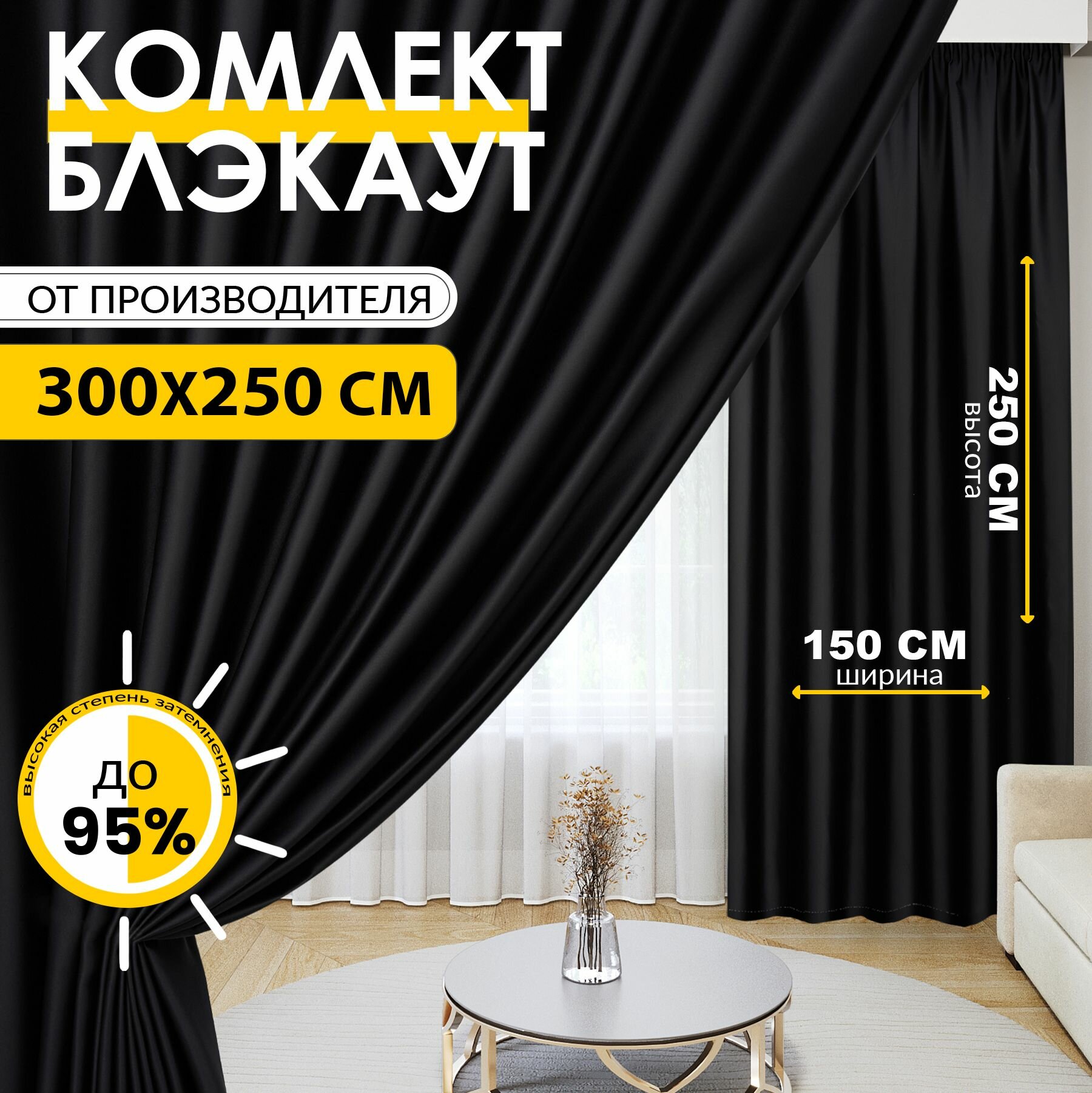 Купить Блэкаут Шторы 300х250 см комплект из 2 полотен по 150 см(Портеры) Черный! Шторы