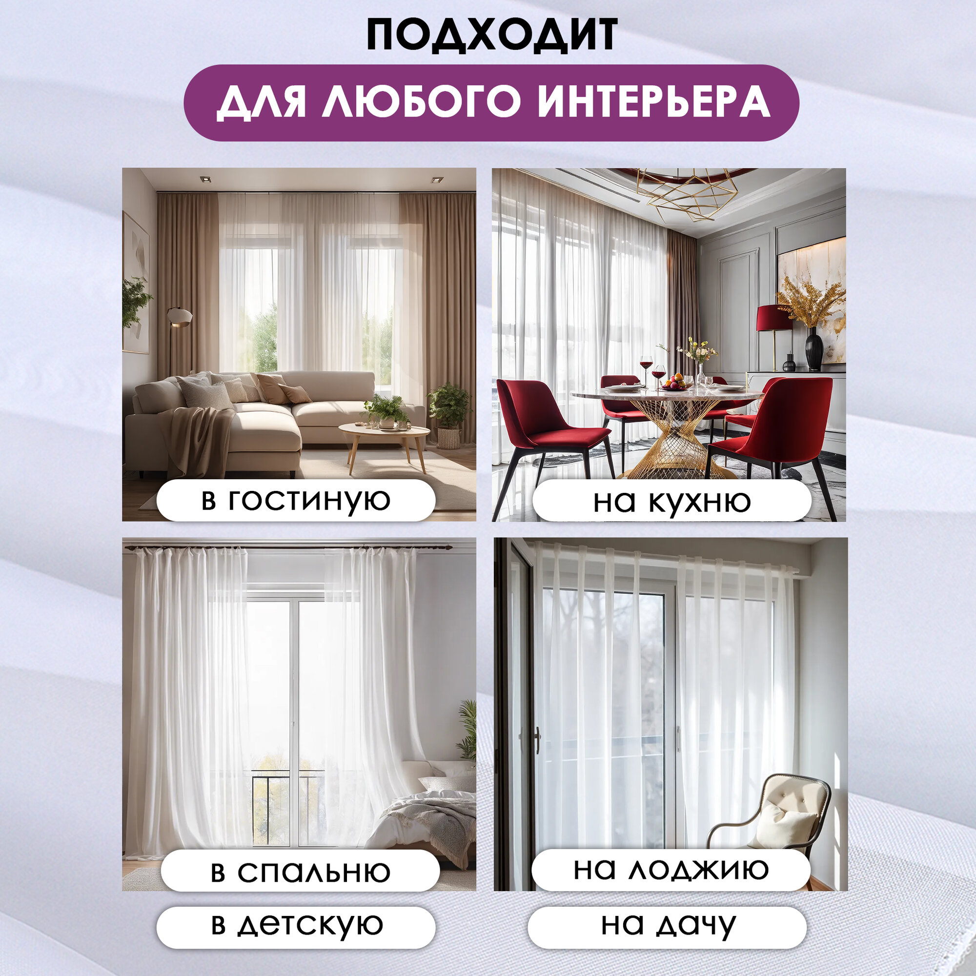 Тюль для гостиной Bio-Line на шторной ленте, тюль для спальни, тюль вуаль белая в гостиную в зал белая 500х240 см. интересное: