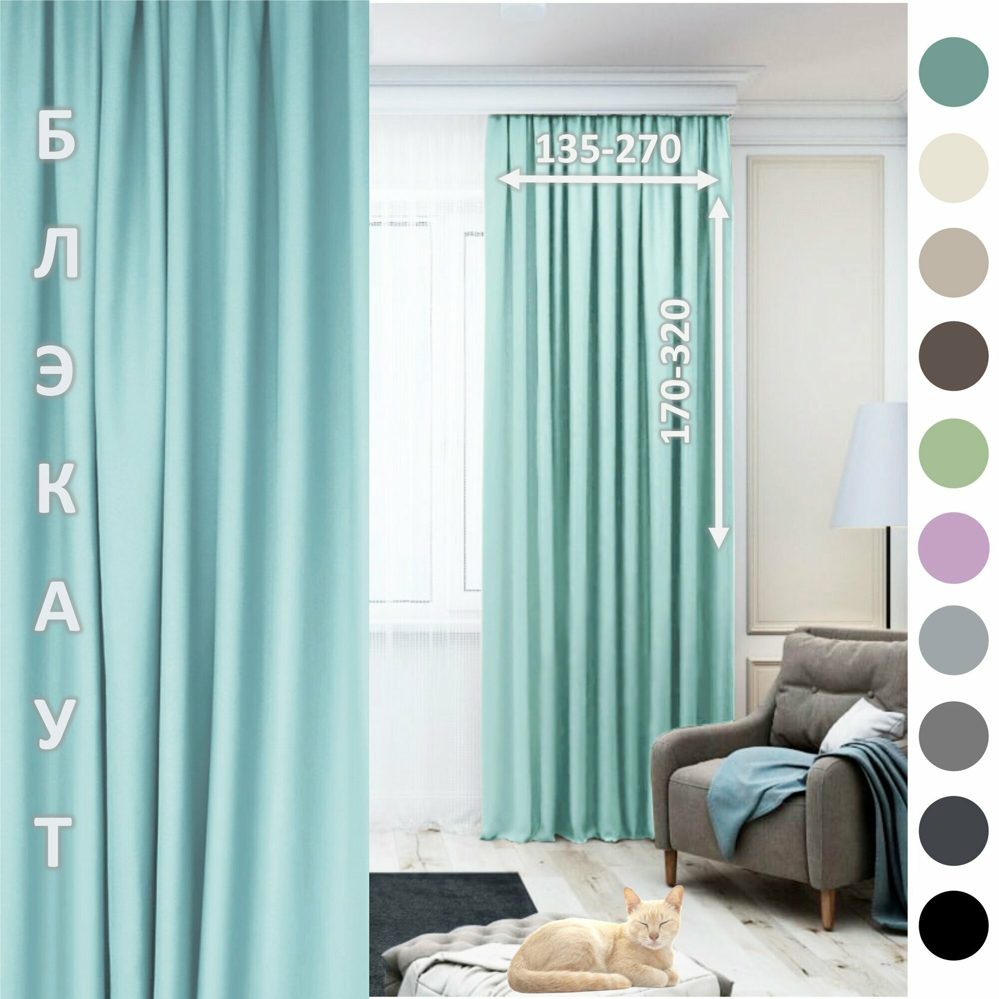 Штора светозащитная для комнаты и спальни "Блэкаут матовый голубой" 270x320 на ленте